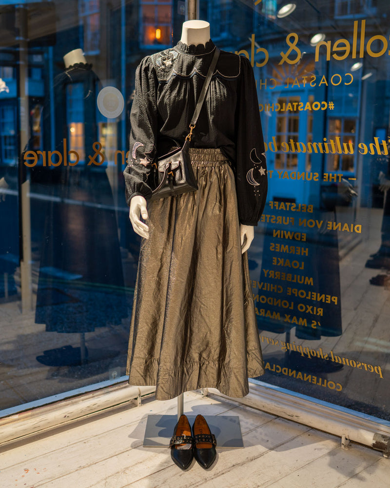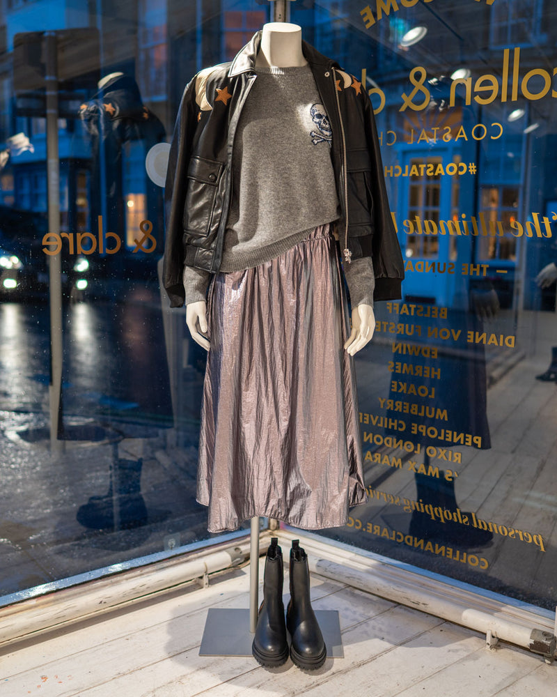 This week at Collen & Clare, our Halloween window is all about black hues, stars, moons, and skulls, elegant with just the right pop of sparkle. Jumper 1234 and Stella Nova headliner bring edgy sophistication, making this display playful, stylish, and undeniably chic.