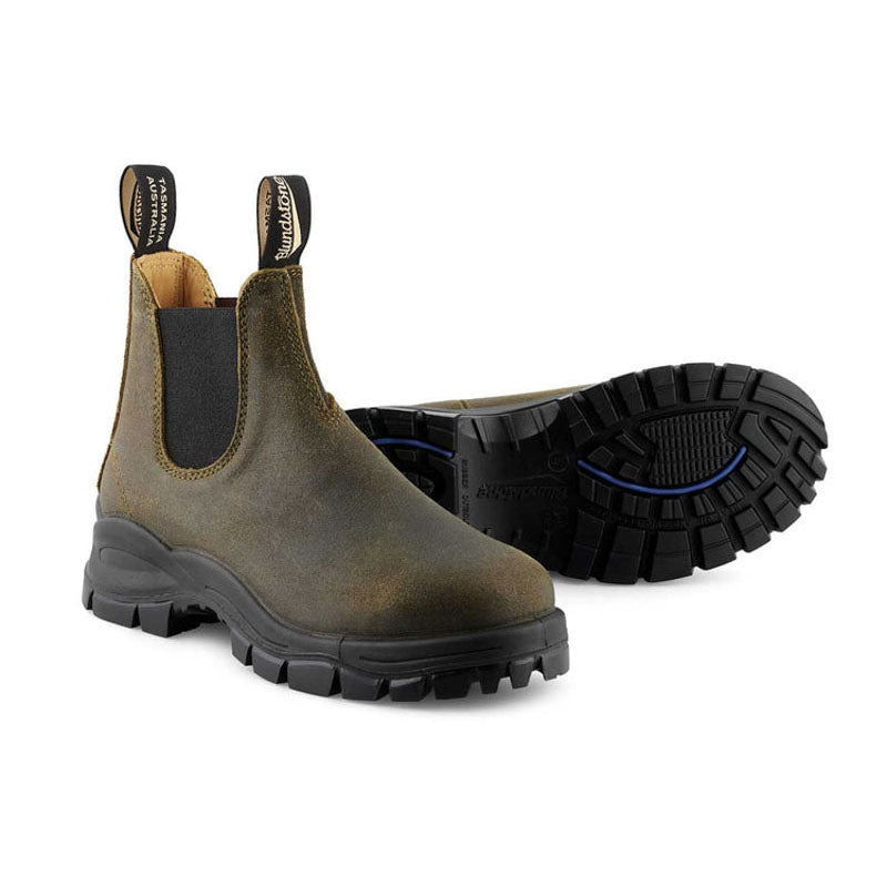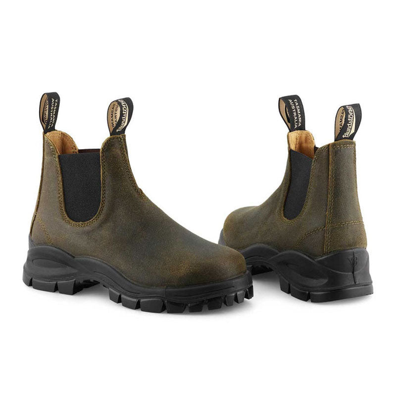 Rustic Black Chelsea boots have premium water-resistant leather uppers with super tough, deep ridged soles for heavy duty comfort. Durability, functionality, style. Not just boots. Blundstone boots.