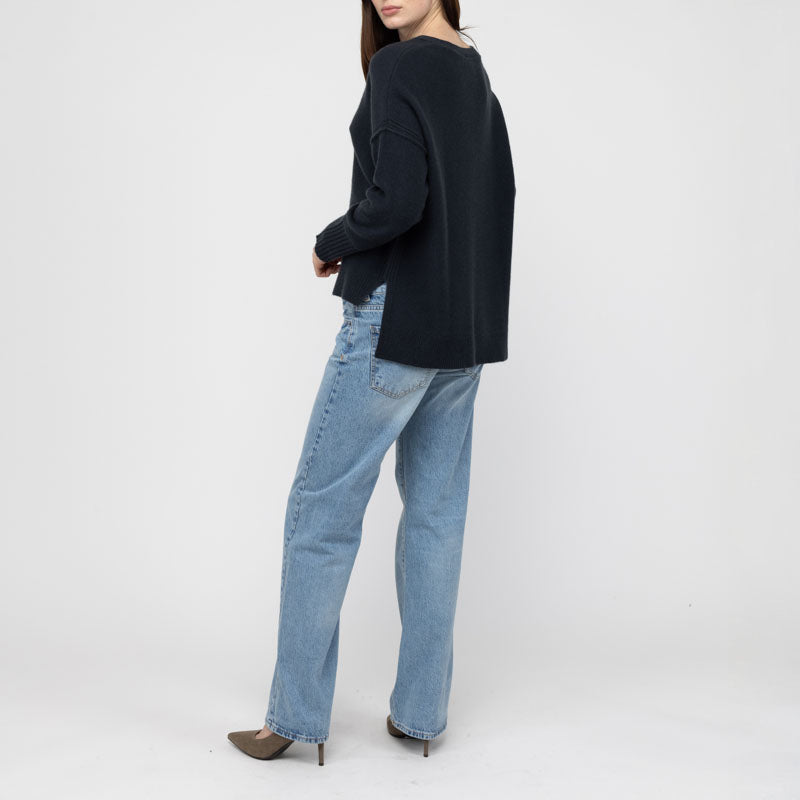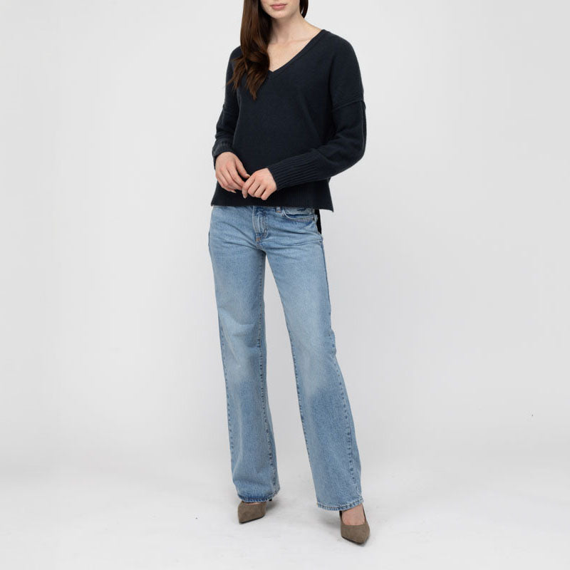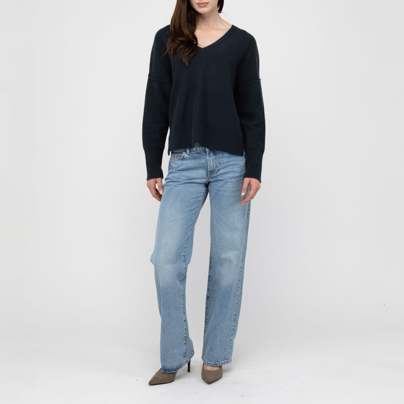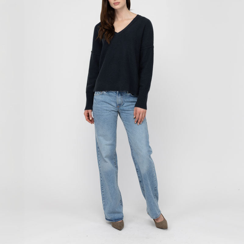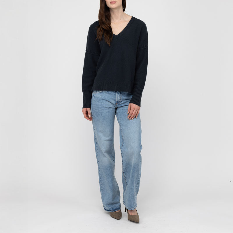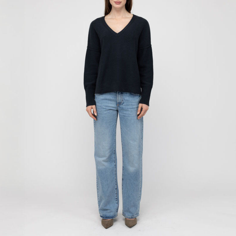 VAN KUKIL Adalyn V Neck Jumper in Ebony Shadow