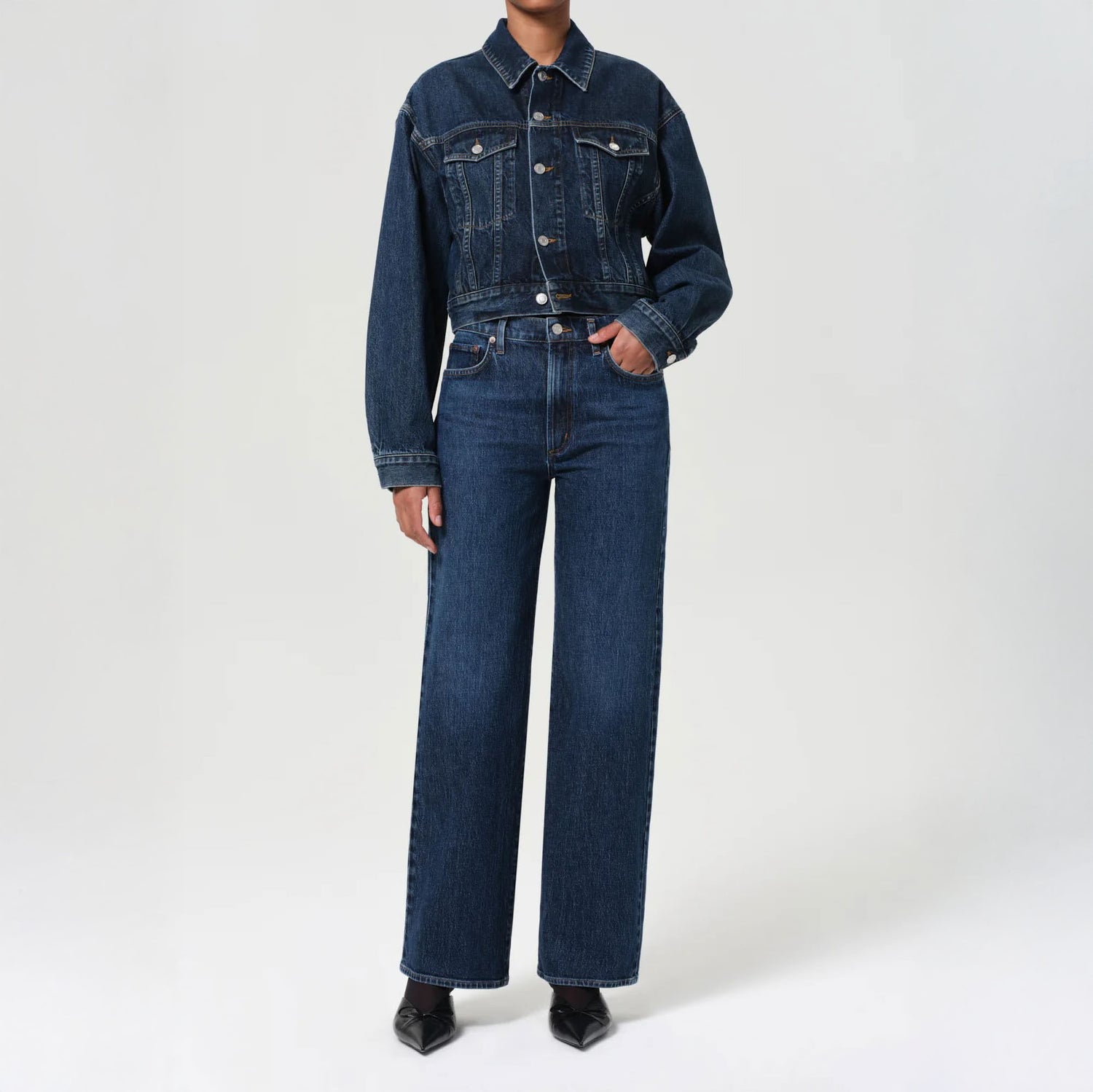 The Harper is crafted from recycled cotton with just the right amount of stretch for comfort. Featuring a relaxed mid-rise fit, it has a flattering square top block and a straight leg. Made in dark vintage indigo with fading and whiskering, it offers a perfectly worn-in, vintage look. A versatile piece that pairs effortlessly with everything from casual tees to elevated tops.