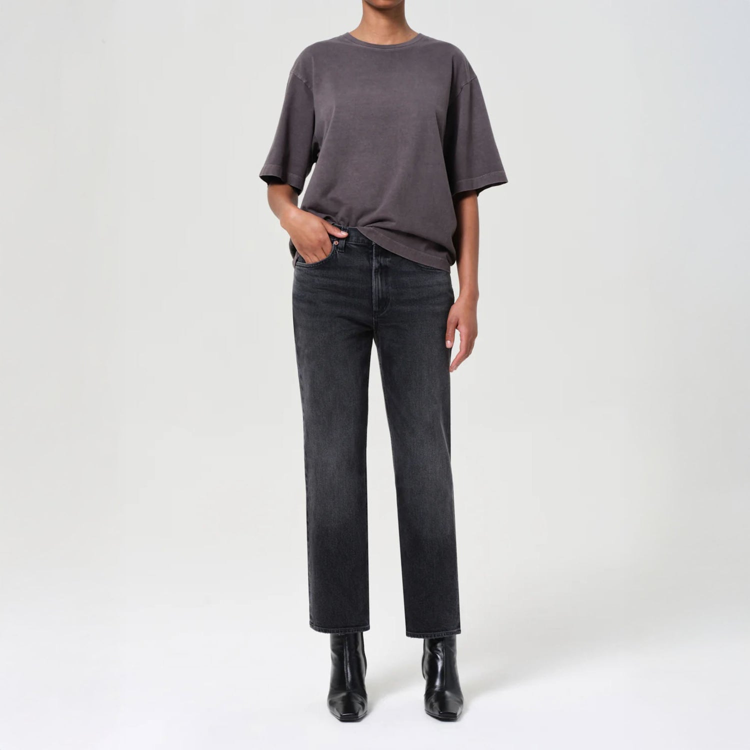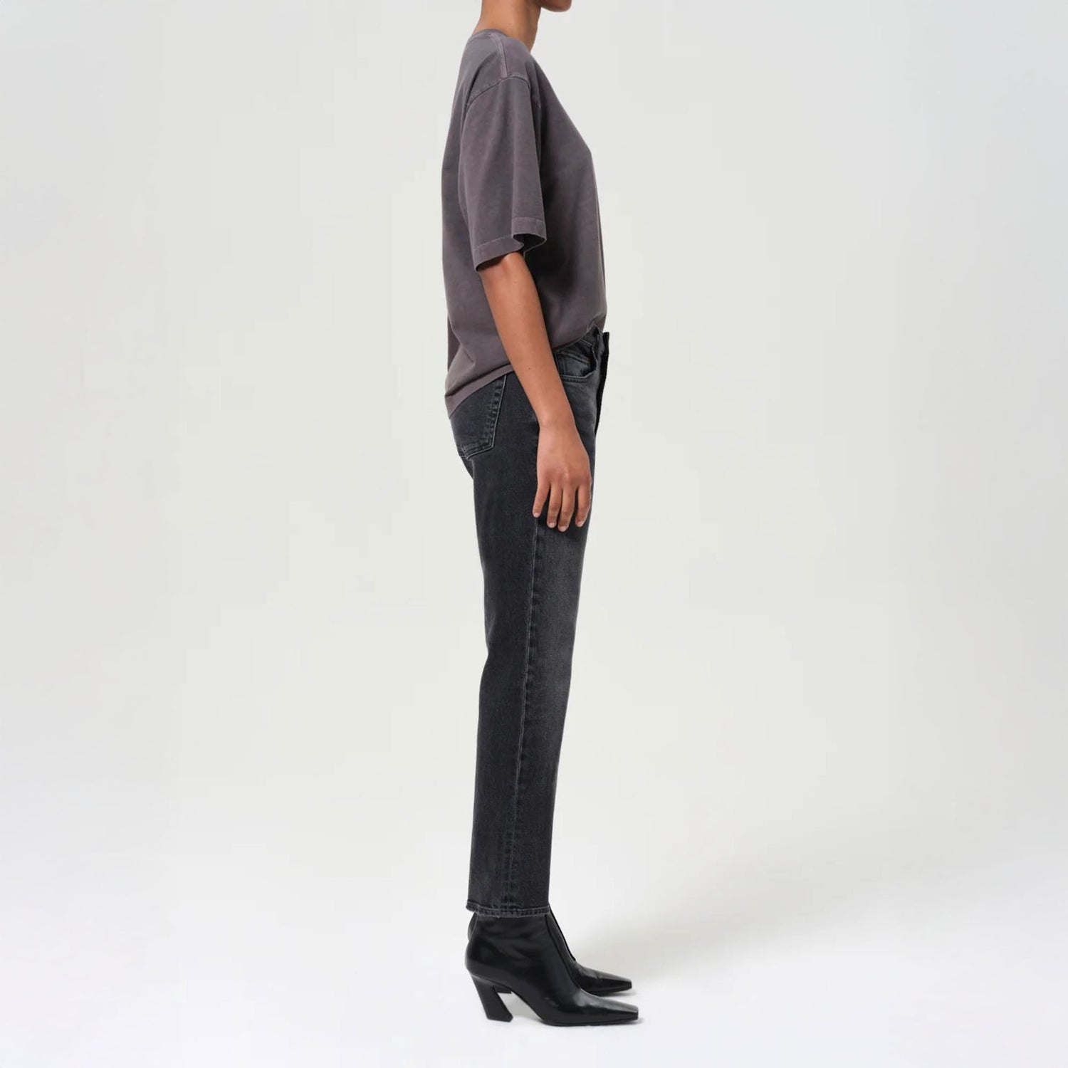 A timeless straight-leg silhouette with subtle edge. Designed with a mid rise and slim-straight fit through the leg, this pair feels lived-in yet refined—perfect for everything from oversized layers to minimal tanks.