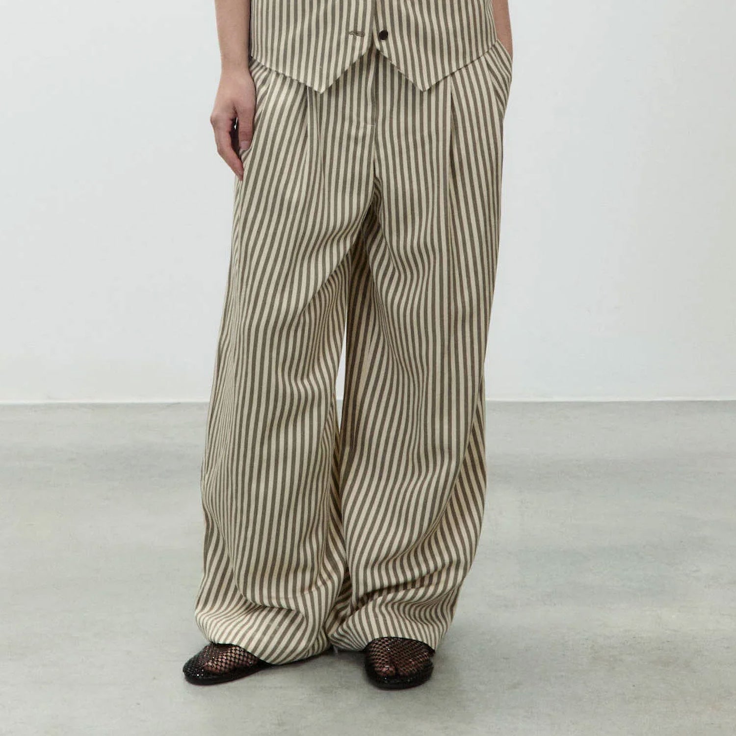 ALYSI Striped Trousers in Sage