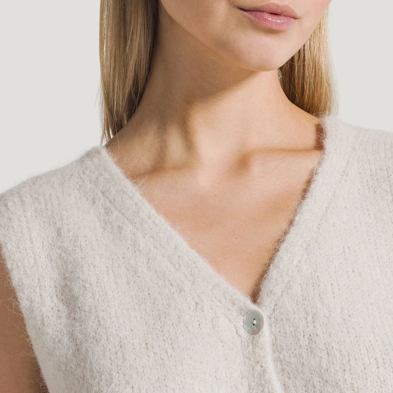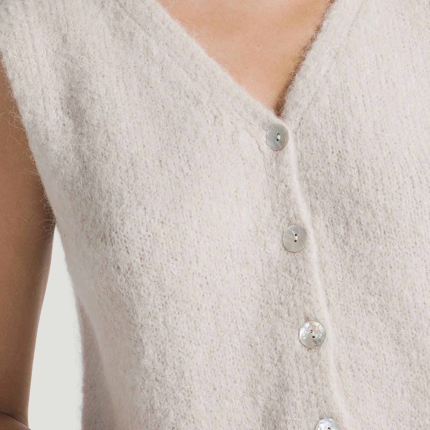 Super soft knits in the most delicious colours, the Telma Vest is elegant, light, and endlessly versatile. Designed to fasten with buttons on one side, it can be worn with the buttons at the front or back, giving you the freedom to style it your way.