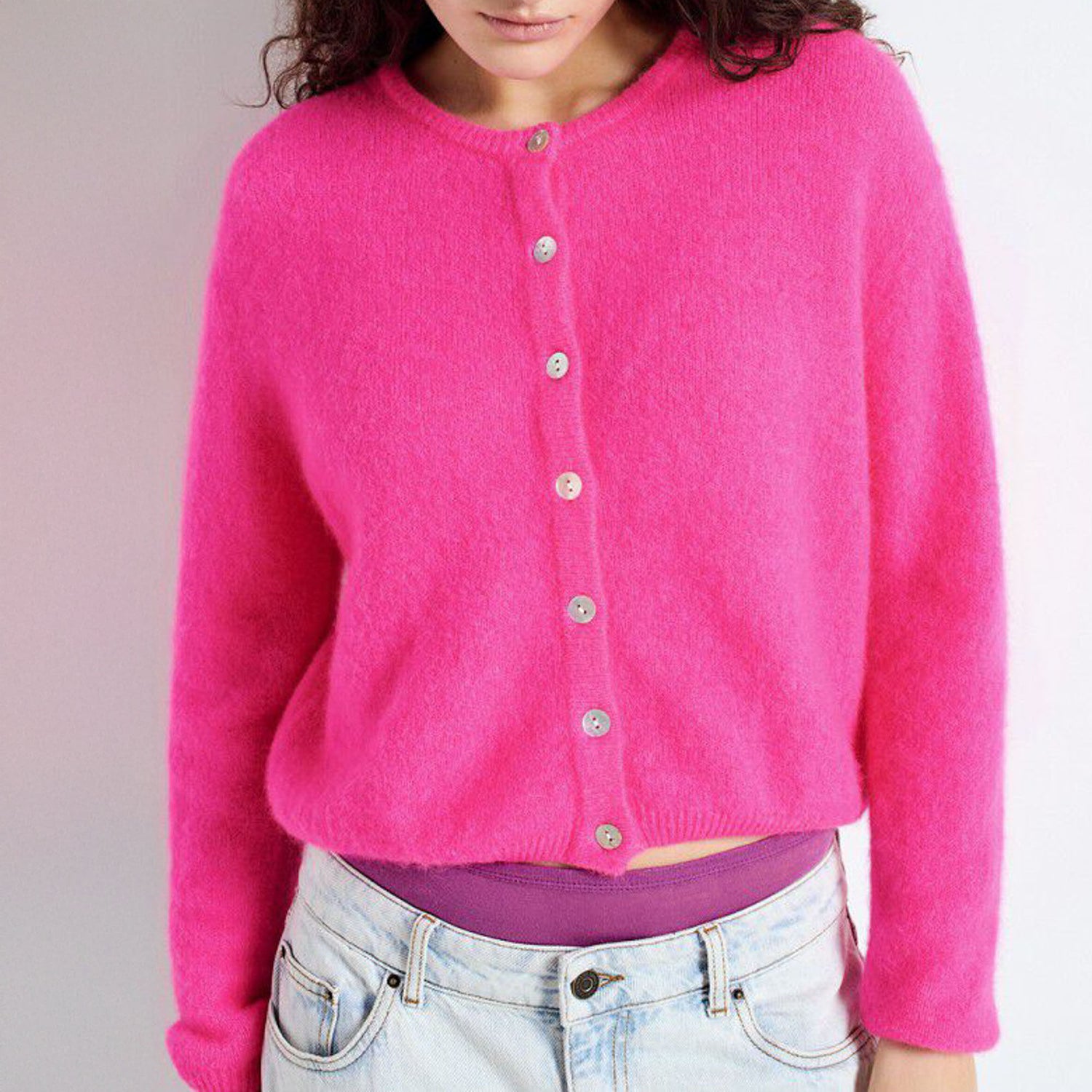 Made from premium Italian yarn, the iconic Vitow cardigan is celebrated for its exceptional quality, soft, fluffy texture, and cosy warmth. Add a playful pop of pink to any outfit with this beautiful and fun wardrobe essential.