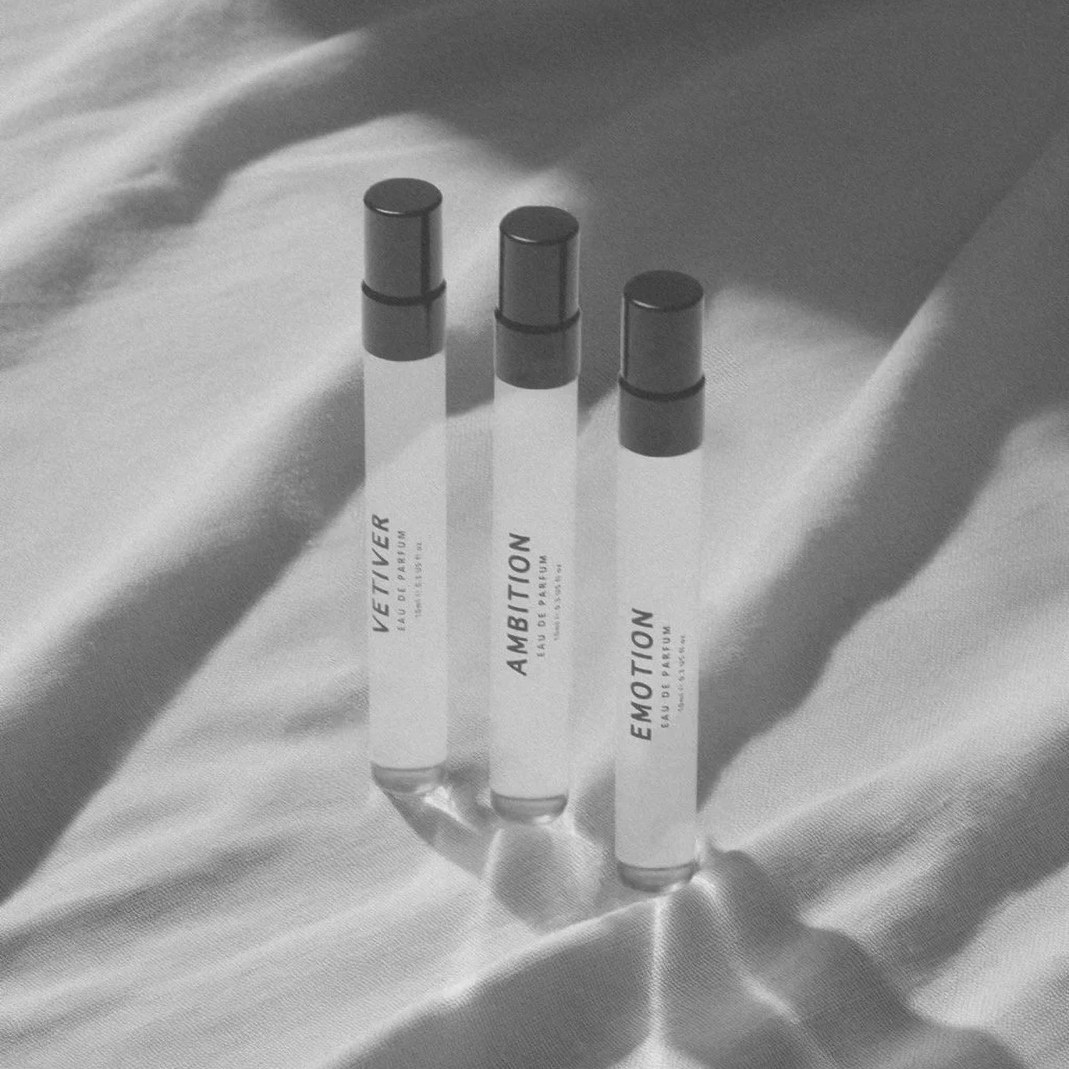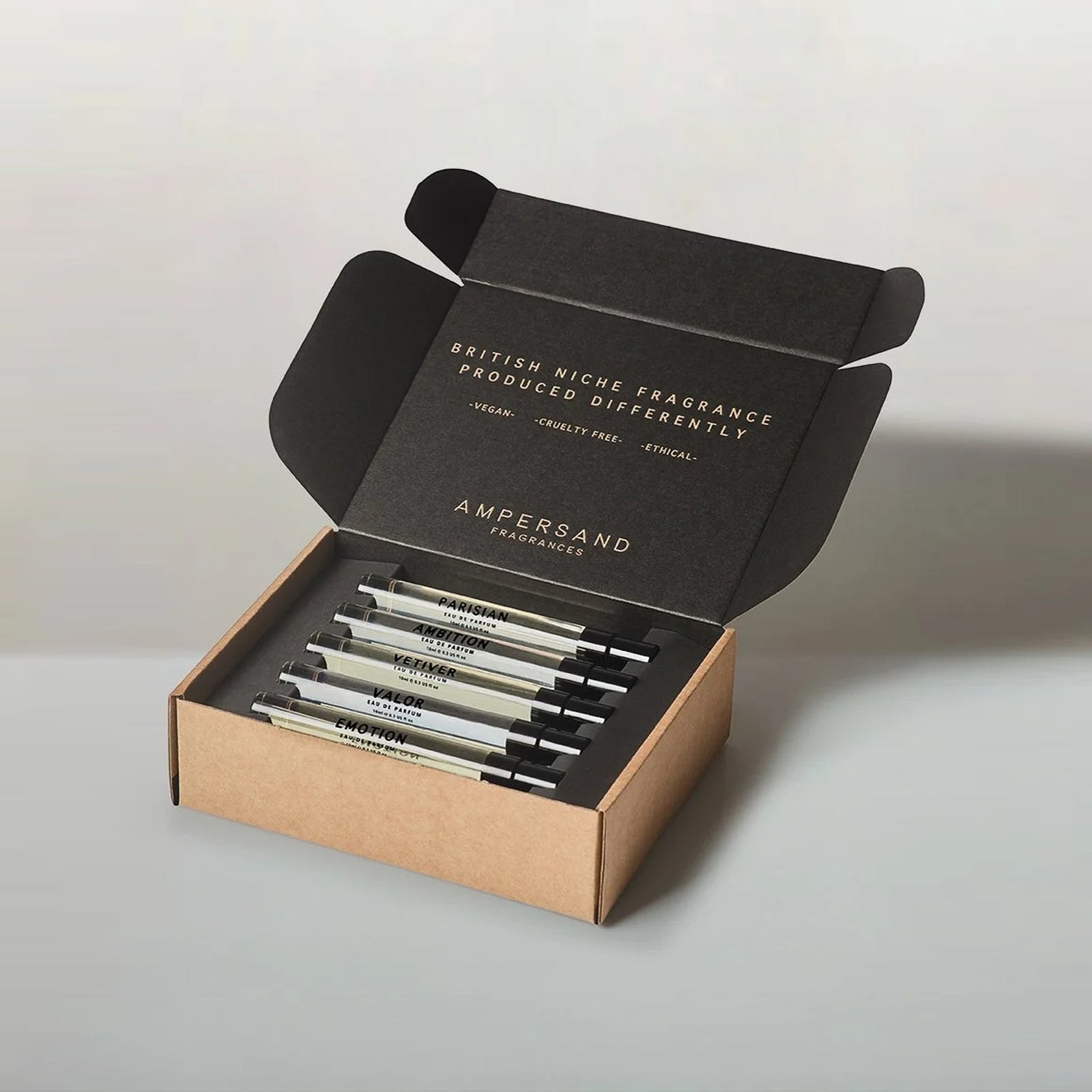 Discover the Ampersand Fragrances Another Set, featuring 10ml samples of Vetiver, Ambition, and Emotion. This collection provides an inviting introduction to distinguished scents, helping you find the fragrance that suits you best.