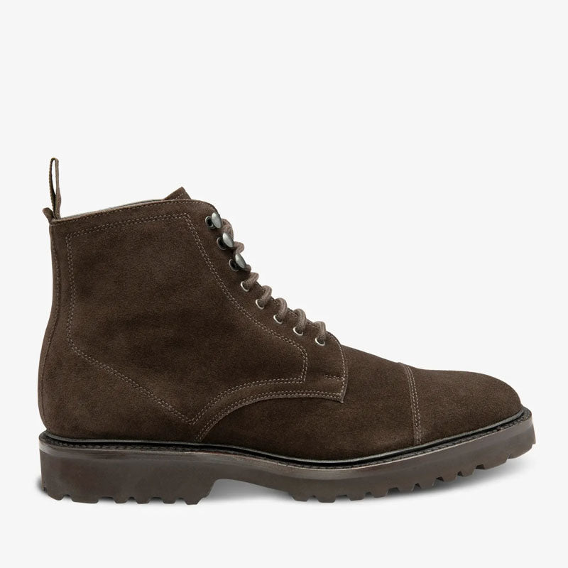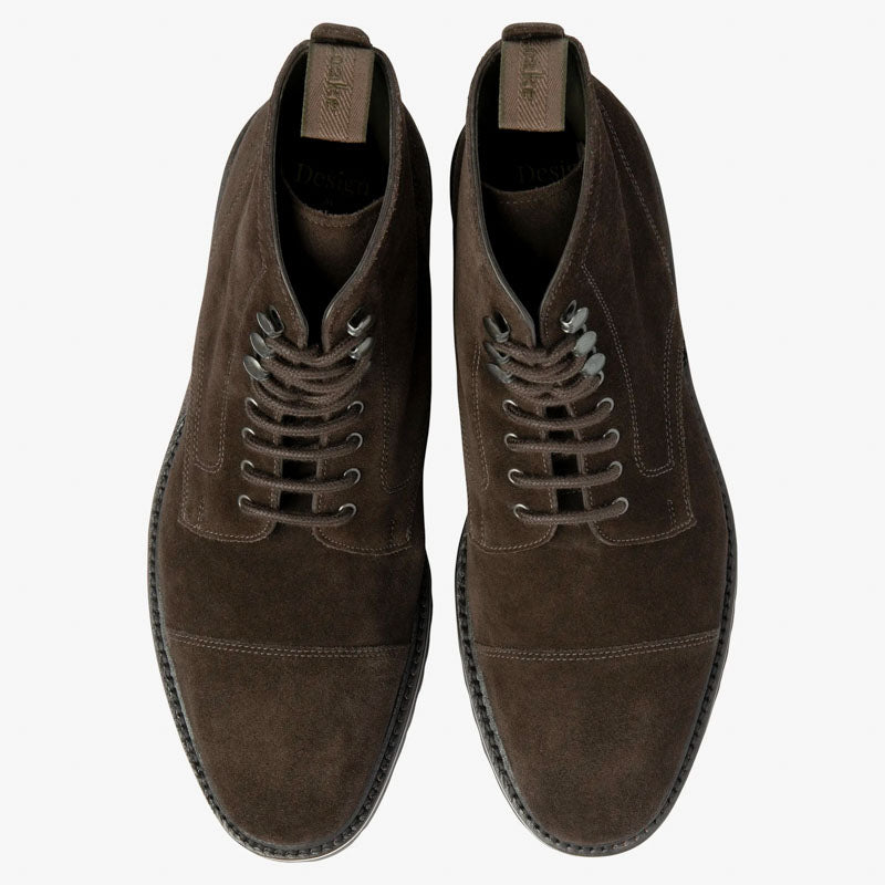 LOAKE Aquarius Suede Derby Toe Cap Boots in Dark Brown