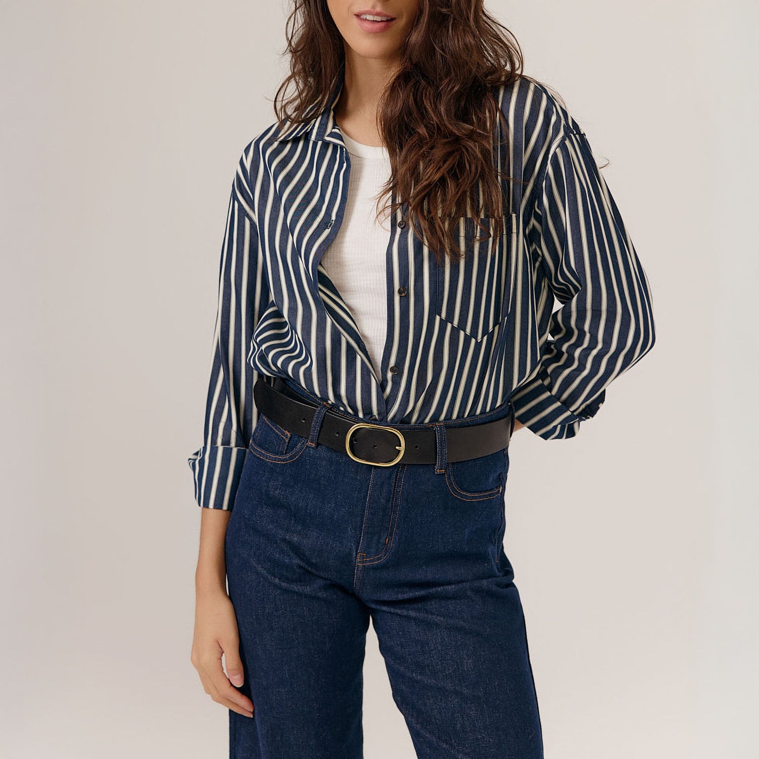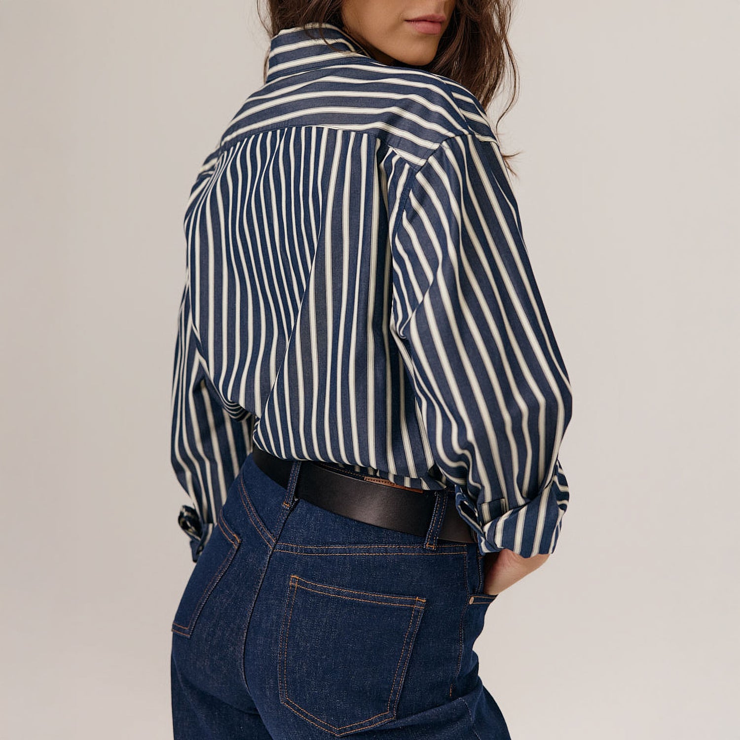 A regular cut shirt featuring a charming lavalliere collar, cute worn on its own and perfect layered under a sleeveless sweater. A trendy and versatile piece that brings a touch of elegance to any outfit.
