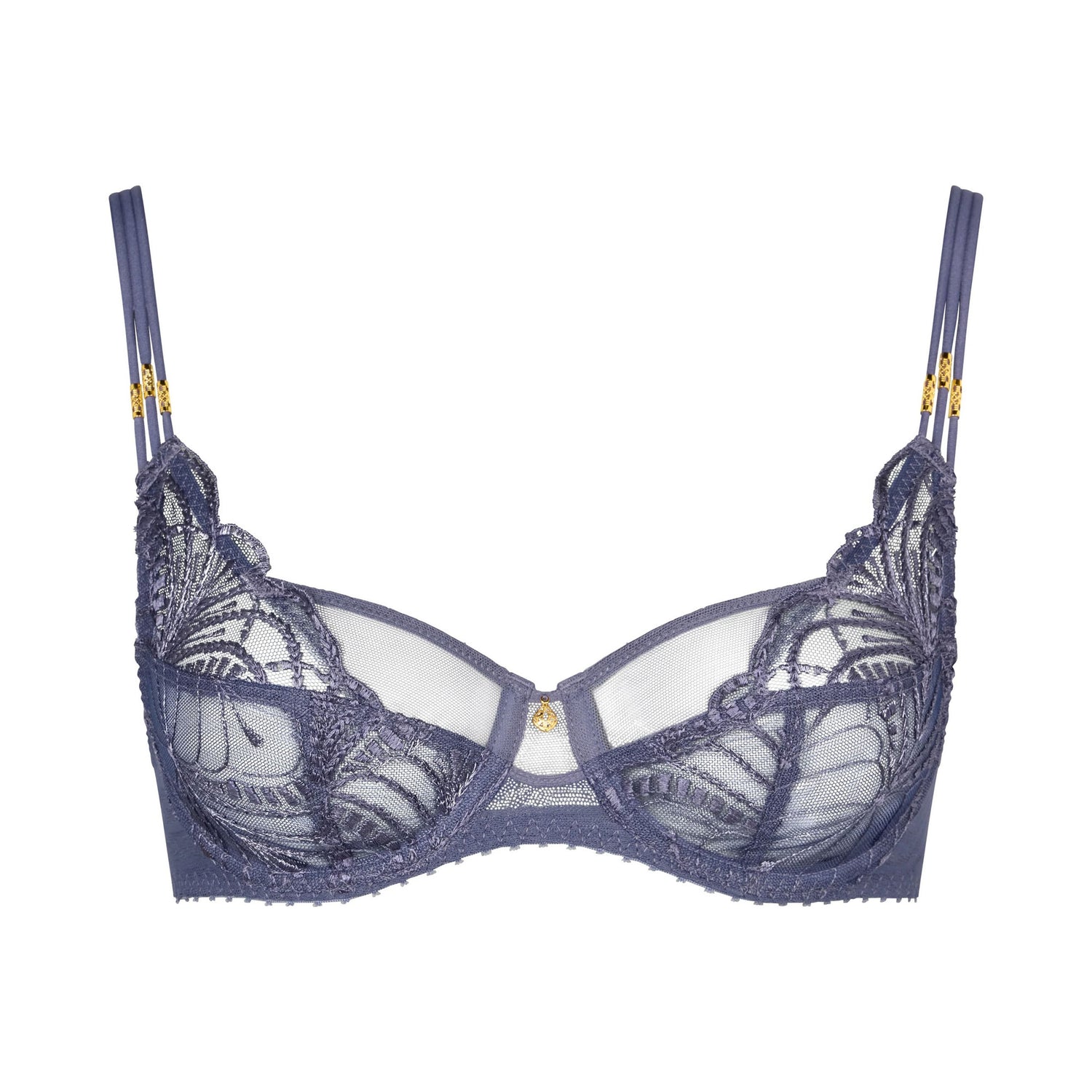 Playing with transparency and contrasting materials, the Vibes shoulder plunge full-cup bra features delicate embroidery and creates a rounded bust, framed by elegant touches of gold. Designed for the ultimate in comfort, it leaves the back mostly bare in a style designed for better support.