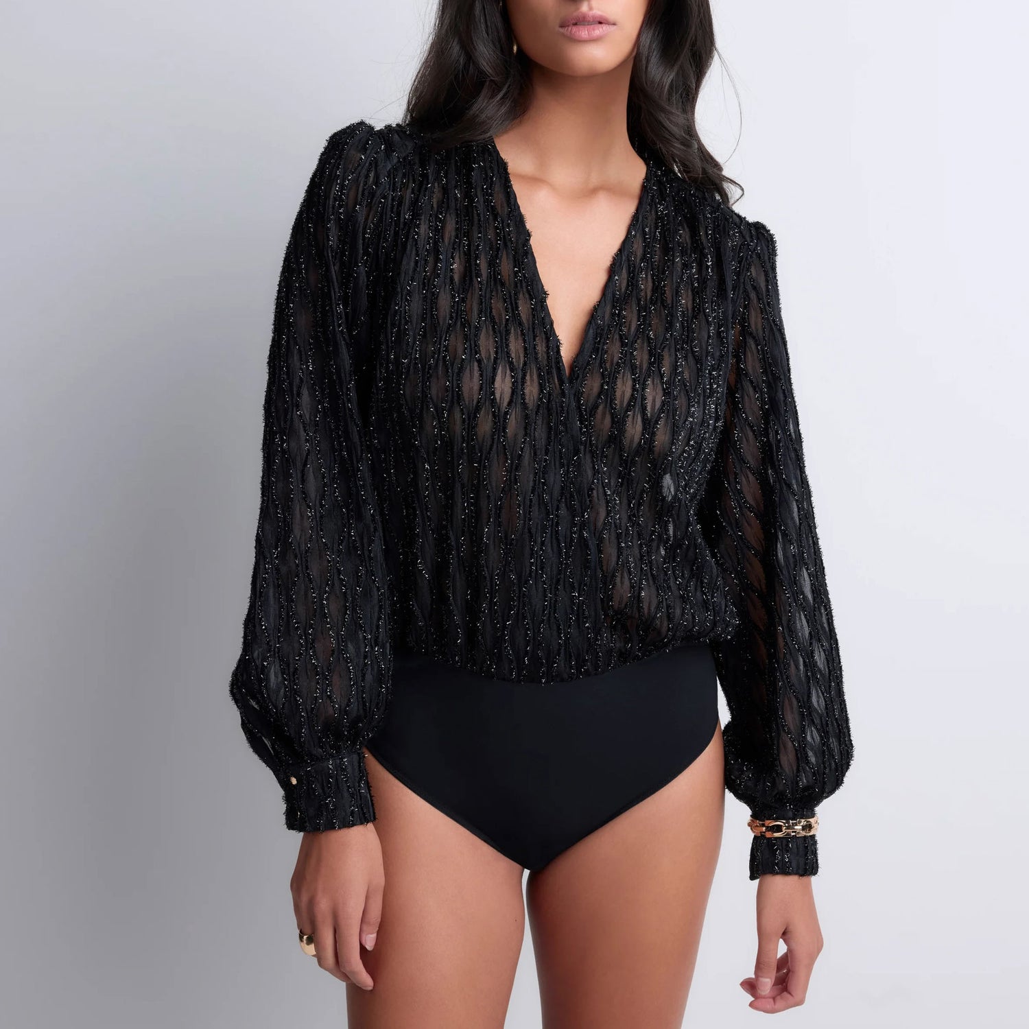 The Aubade Long Sleeve Bodysuit in Black... the perfect piece for the season ahead. Style effortlessly with tailored trousers for an elevated look, or pair with your favourite jeans for chic everyday appeal.