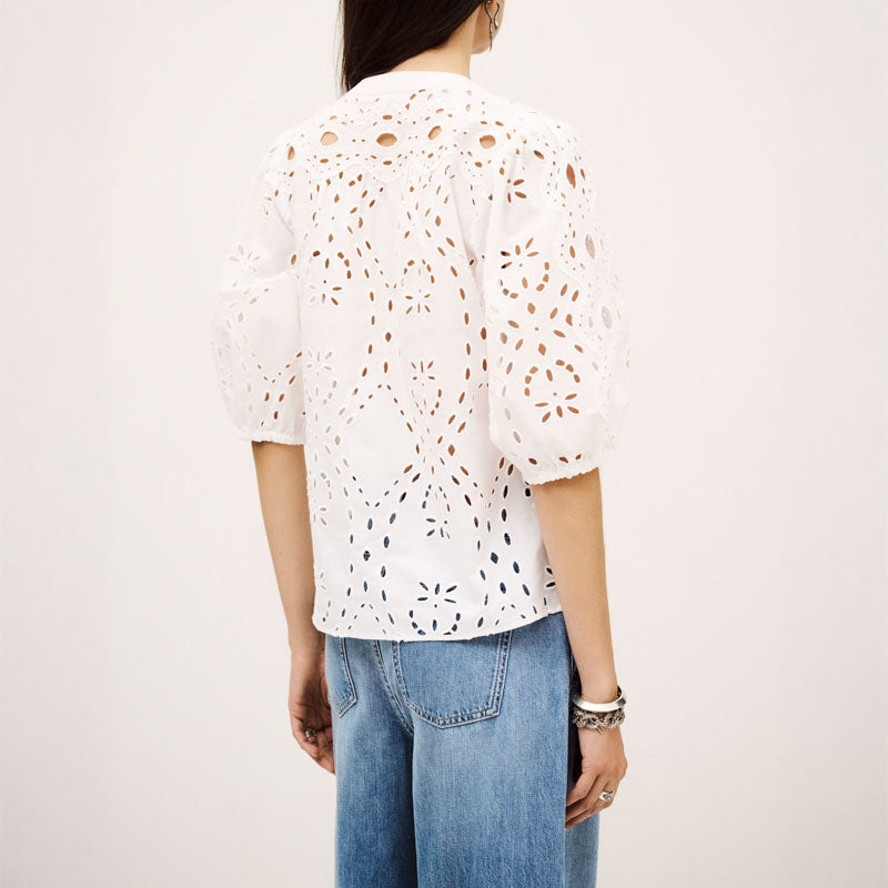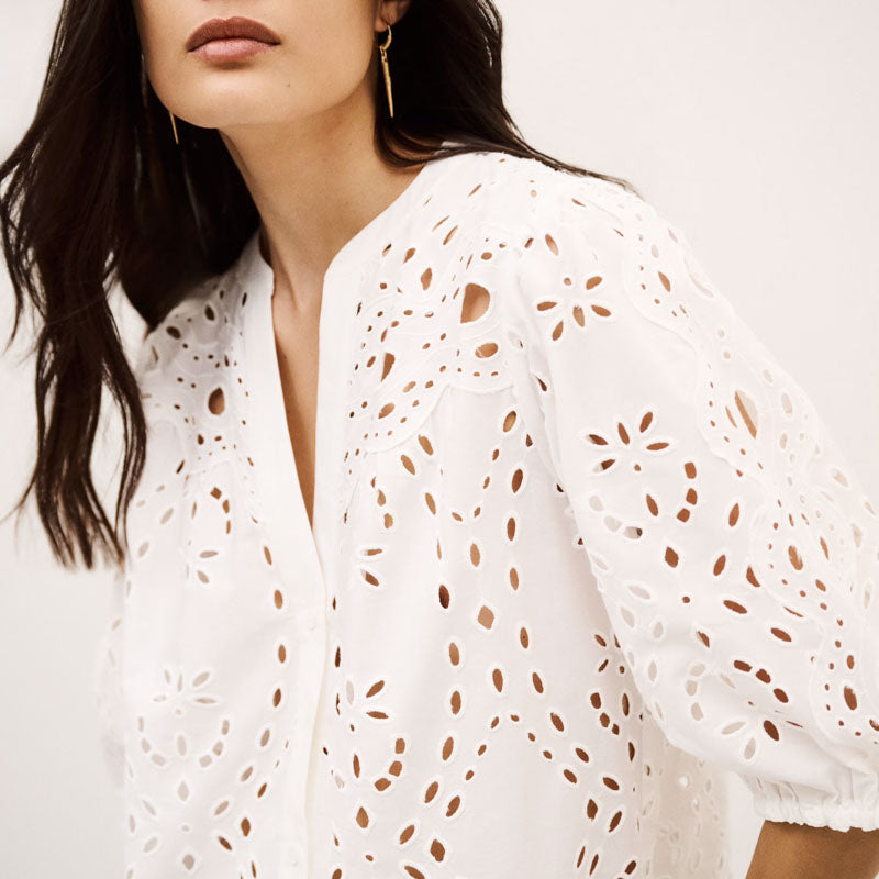 This stunning Broderie Anglais blouse from Ba&sh is the perfect addition to your summer wardrobe. Known for their chic boho style, Ba&sh delivers yet another timeless piece. The khaki green hue adds a fresh, earthy touch, while the delicate cut-out design brings a playful yet elegant vibe. Pair it effortlessly with your favourite denim shorts or linen trousers for a laid-back, stylish look.