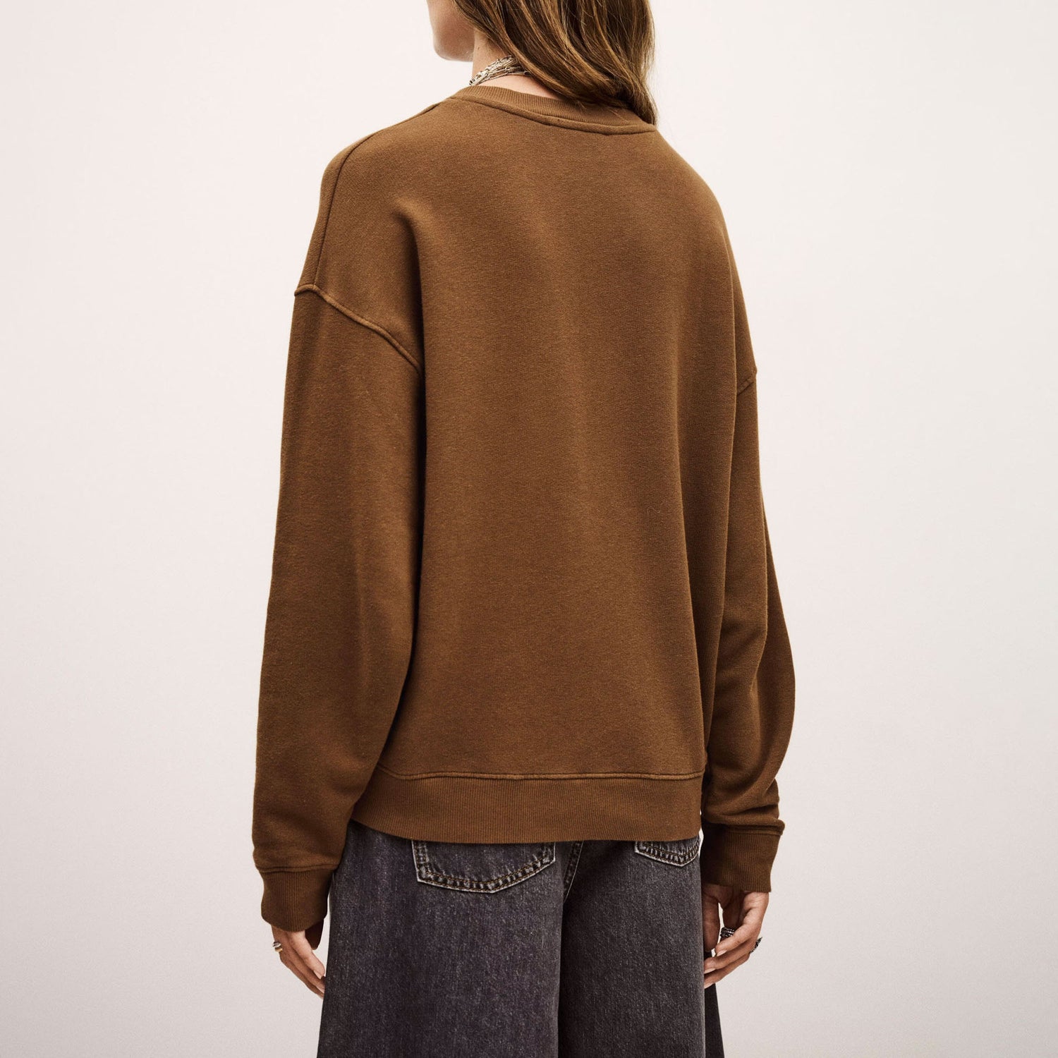 This sweatshirt is cut in a relaxed wide fit with a classic round neckline and long sleeves for effortless comfort. Featuring ribbed edges and a bold front print, it channels a laid-back boyfriend style that's perfect for off-duty days. Made in Portugal from soft, premium fabric.