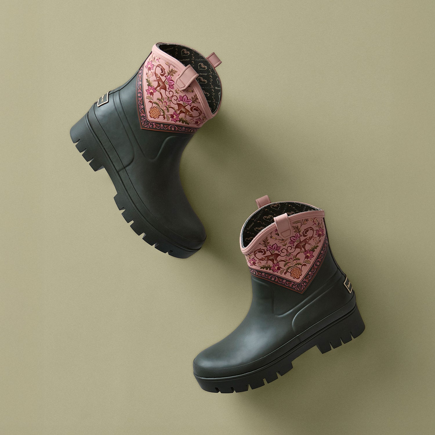 Reimagine your classic Barbour wellington and then add funk with Farm Rio's Brazilian spirt and its not over yet as these boots also features a western spin on Barbour's signature ankle wellies! Cool, eye catching and made for bringing fun to any rainy day.
