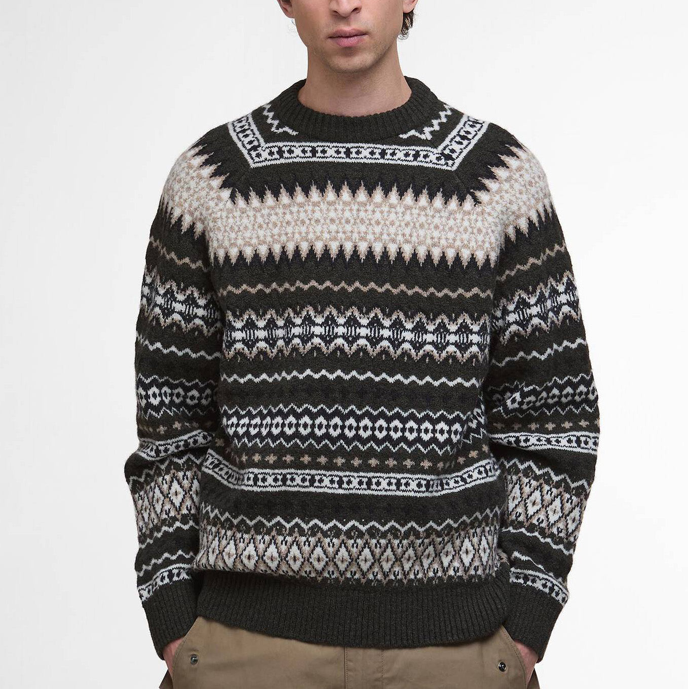 BARBOUR Hase Brushed Fair Isle Crew Neck in Olive/Ink
