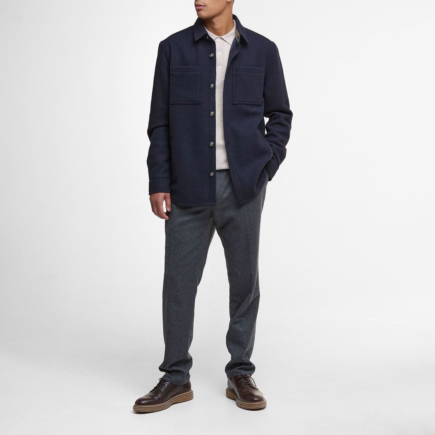 Featuring a button-through front, chest patch pockets, and side welt pockets, it’s designed for everyday versatility. A subtle tartan trim inside the collar adds a signature Barbour touch. Wear it as a lightweight jacket or layered for a smarter look... ideal for day-to-night dressing.