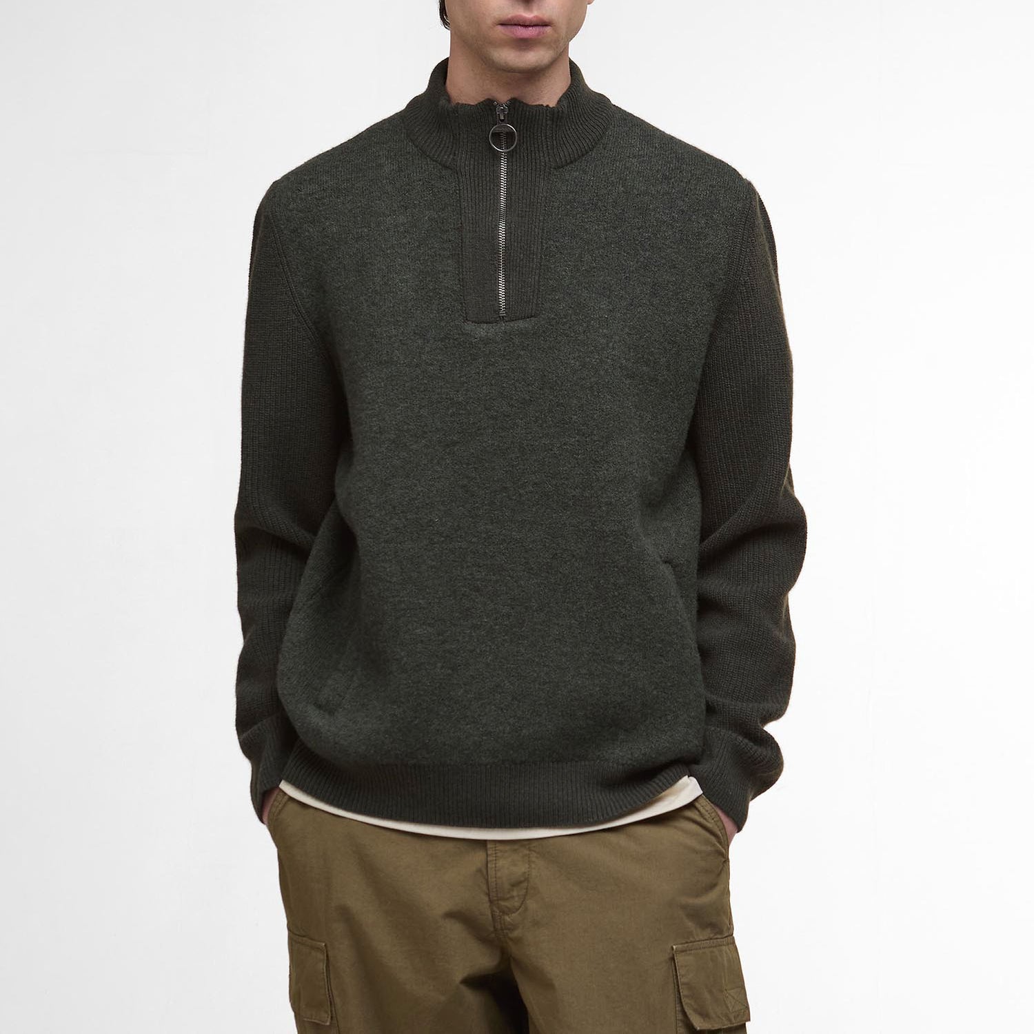 BARBOUR Milburn Half Zip Jumper in Dark/Olive