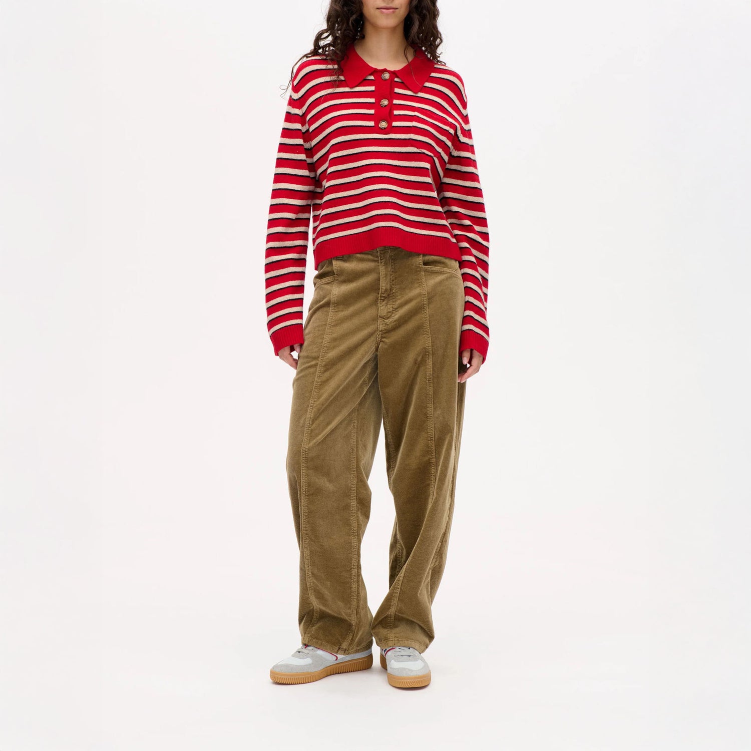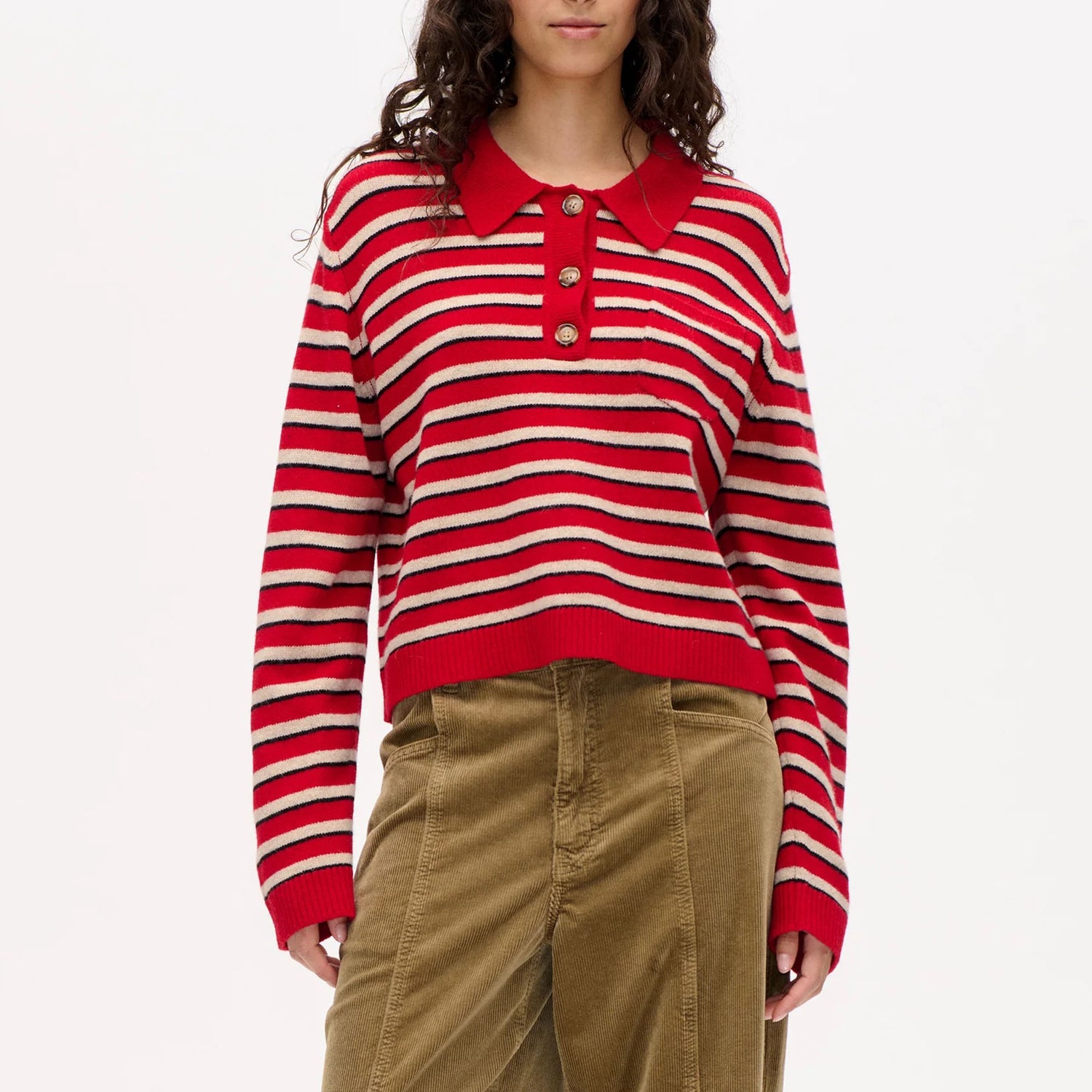 The Cori Sweater is a go-to for laid-back luxury — crafted from the softest merino wool in a timeless striped design. With a relaxed fit and a classic polo-style collar finished with three buttons, it’s effortlessly wearable and perfect for layering through the colder months. Pair with your favourite denim for a cosy yet considered everyday look that’s as at home on coastal walks as it is curled up indoors.