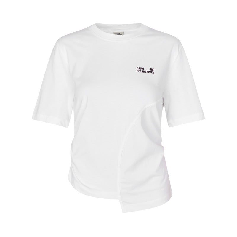The Josje T-shirt is a fresh take on the classic tee made in the softest organic cotton for all-day comfort. An asymmetrical piece on the side adds a playful touch, while subtle ruching and embroidered logo at the chest elevate the design. Style it with jeans for a cool everyday look.
