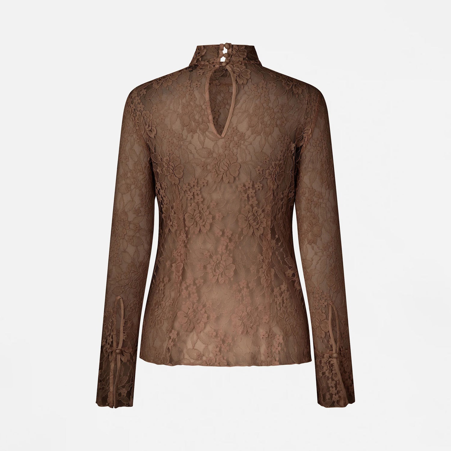 The Meena Blouse is a beautifully sheer, lace-detailed piece that adds just the right touch of romance to your wardrobe. Crafted in delicate floral lace, it features a softly fitted silhouette, a high neckline, and subtly flared sleeves with buttoned cuffs for a graceful finish.