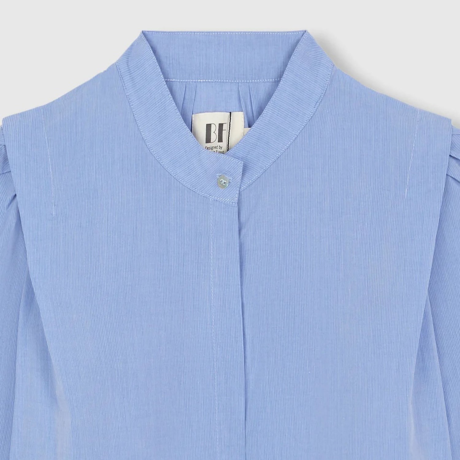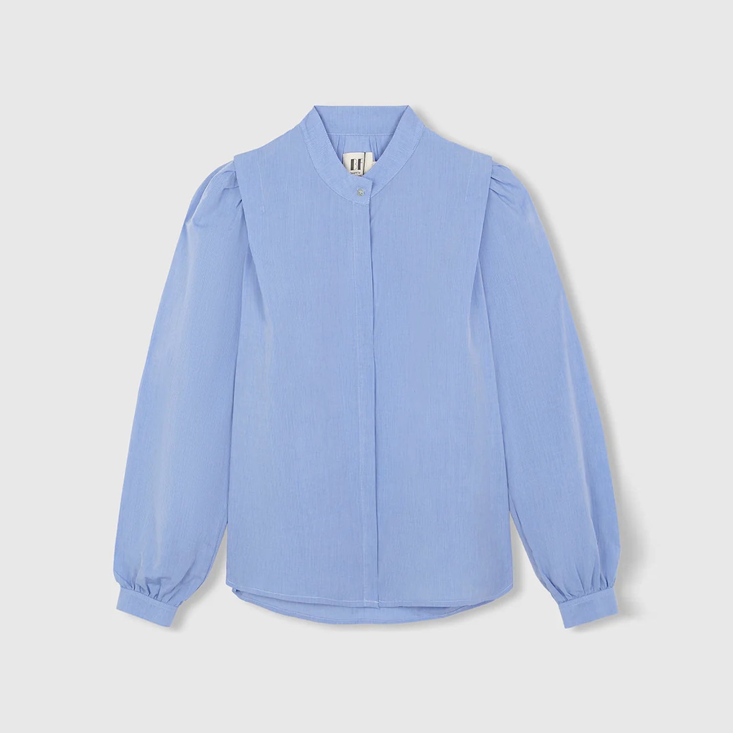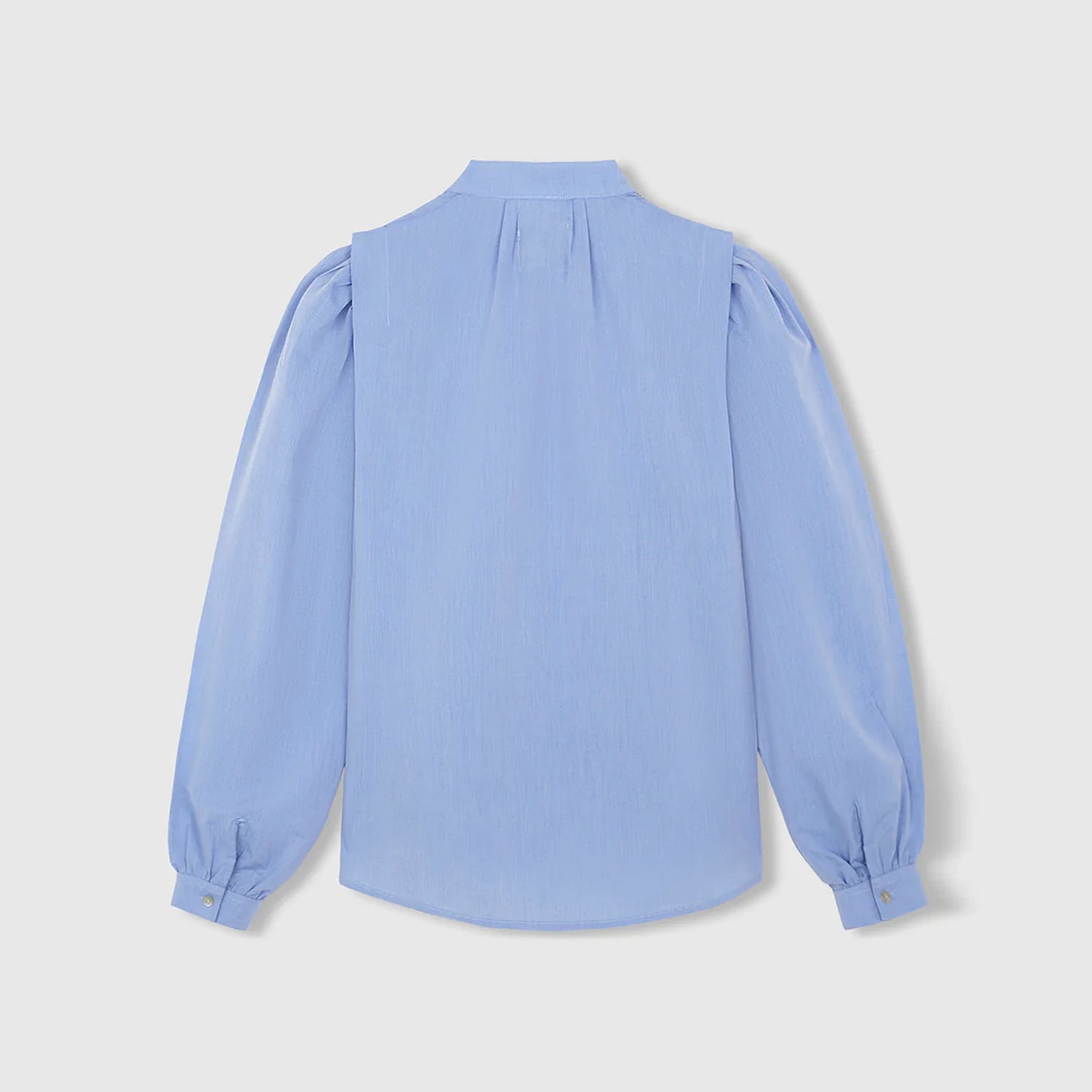 Featuring a Mao collar, concealed front button closure, and delicate shoulder accents, it’s finished with softly puffed long sleeves and buttoned cuffs. Effortlessly elegant and easy to wear.