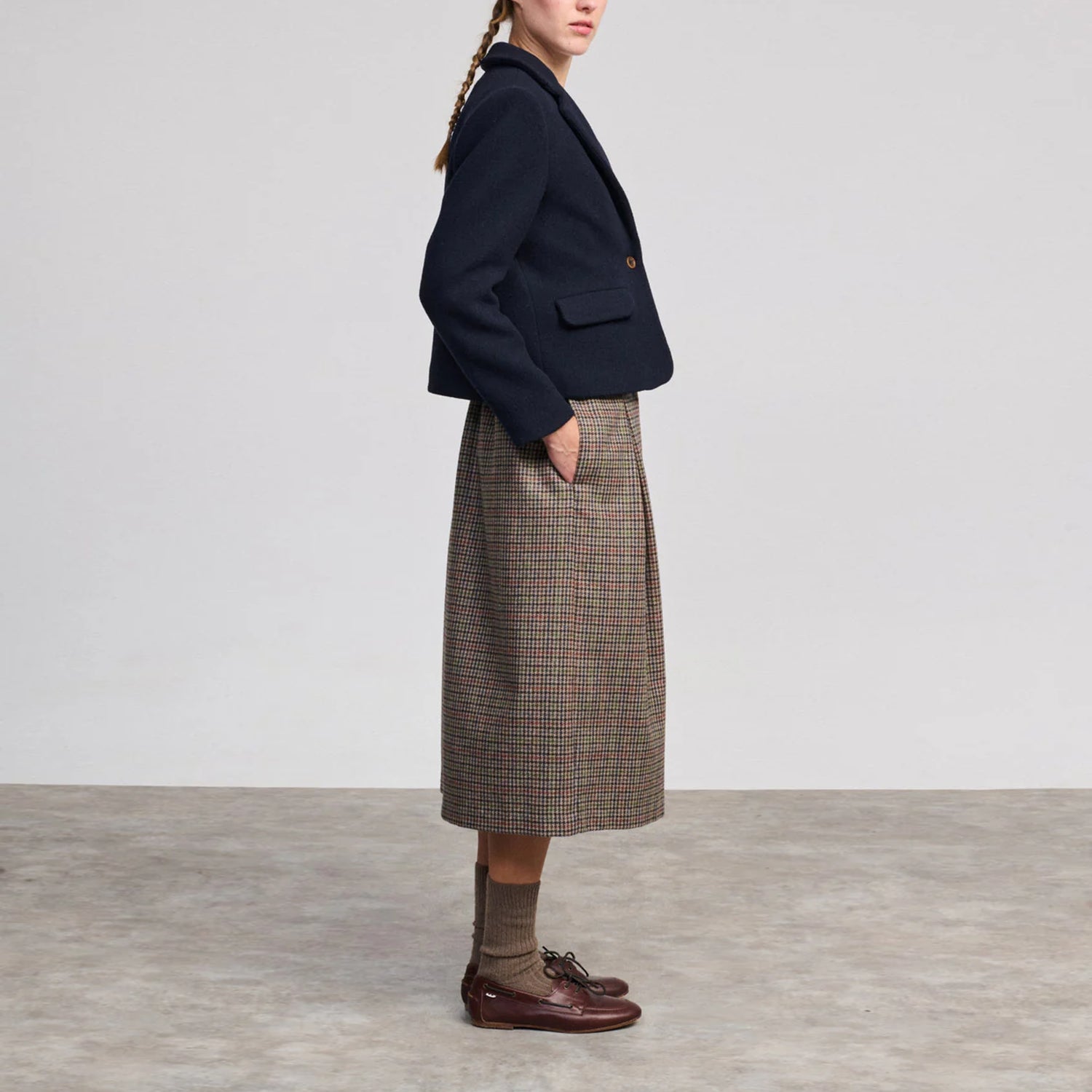 A timeless silhouette with a playful twist, this checkered midi skirt is crafted from 100% cotton for a crisp yet comfortable feel. Designed with a fitted waist and defined pleats, it falls to a flattering midi length. Side pockets add everyday ease.