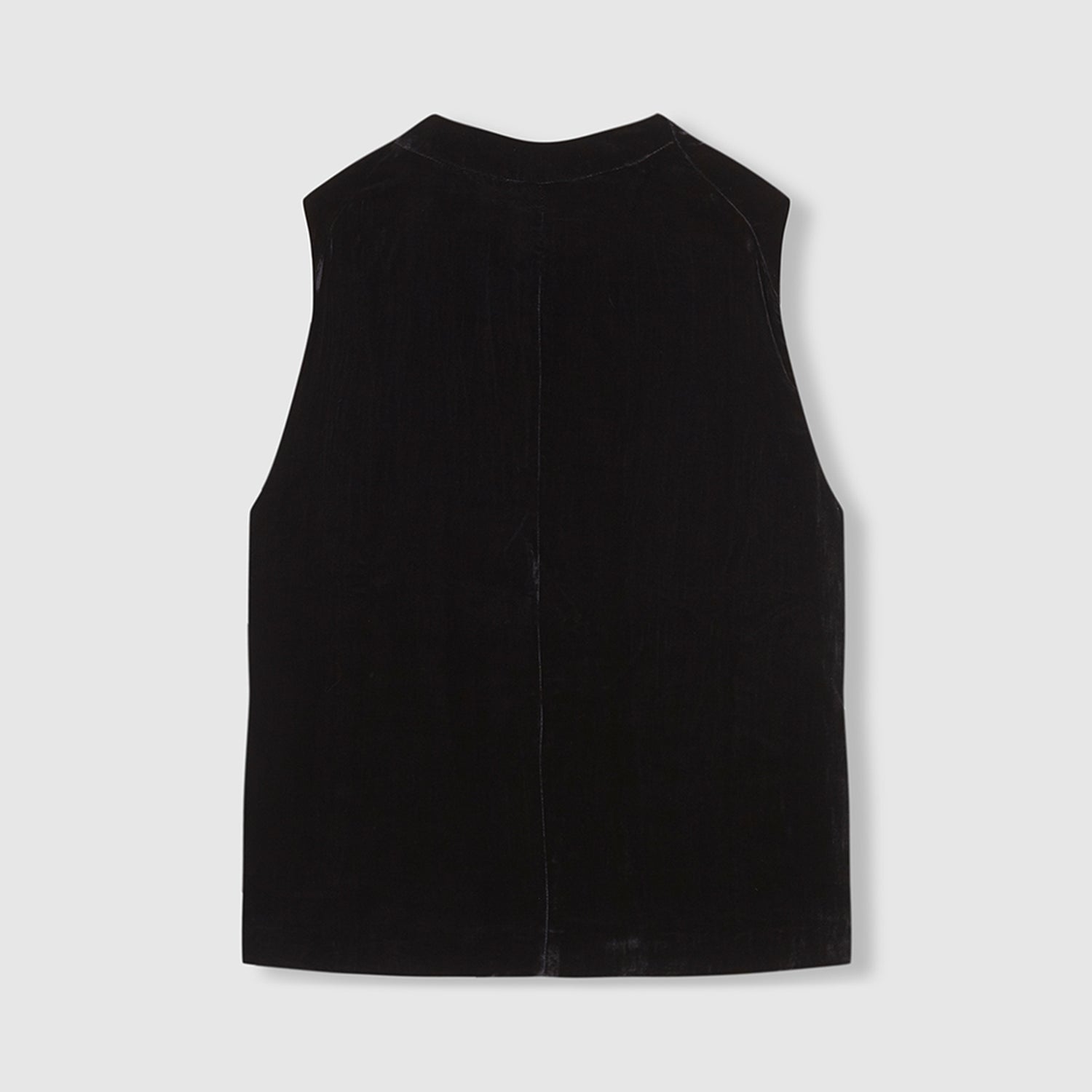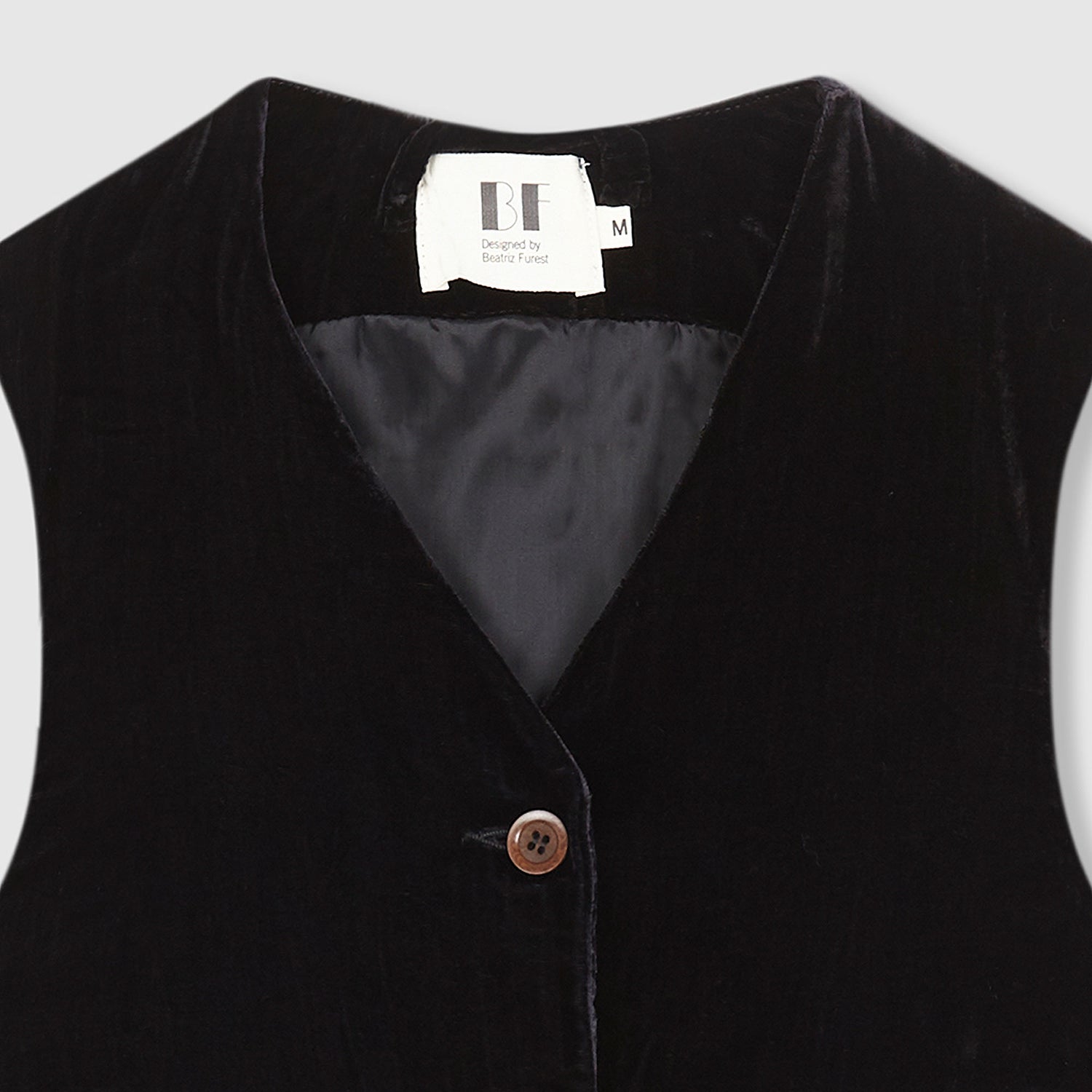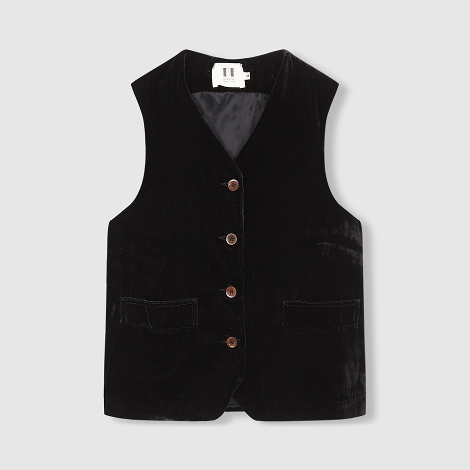 A beautifully cut velvet vest that adds instant polish to any outfit. Made in Spain from a soft blend of 75% viscose and 25% polyamide, it features a four-button closure and a sleek, tailored fit.