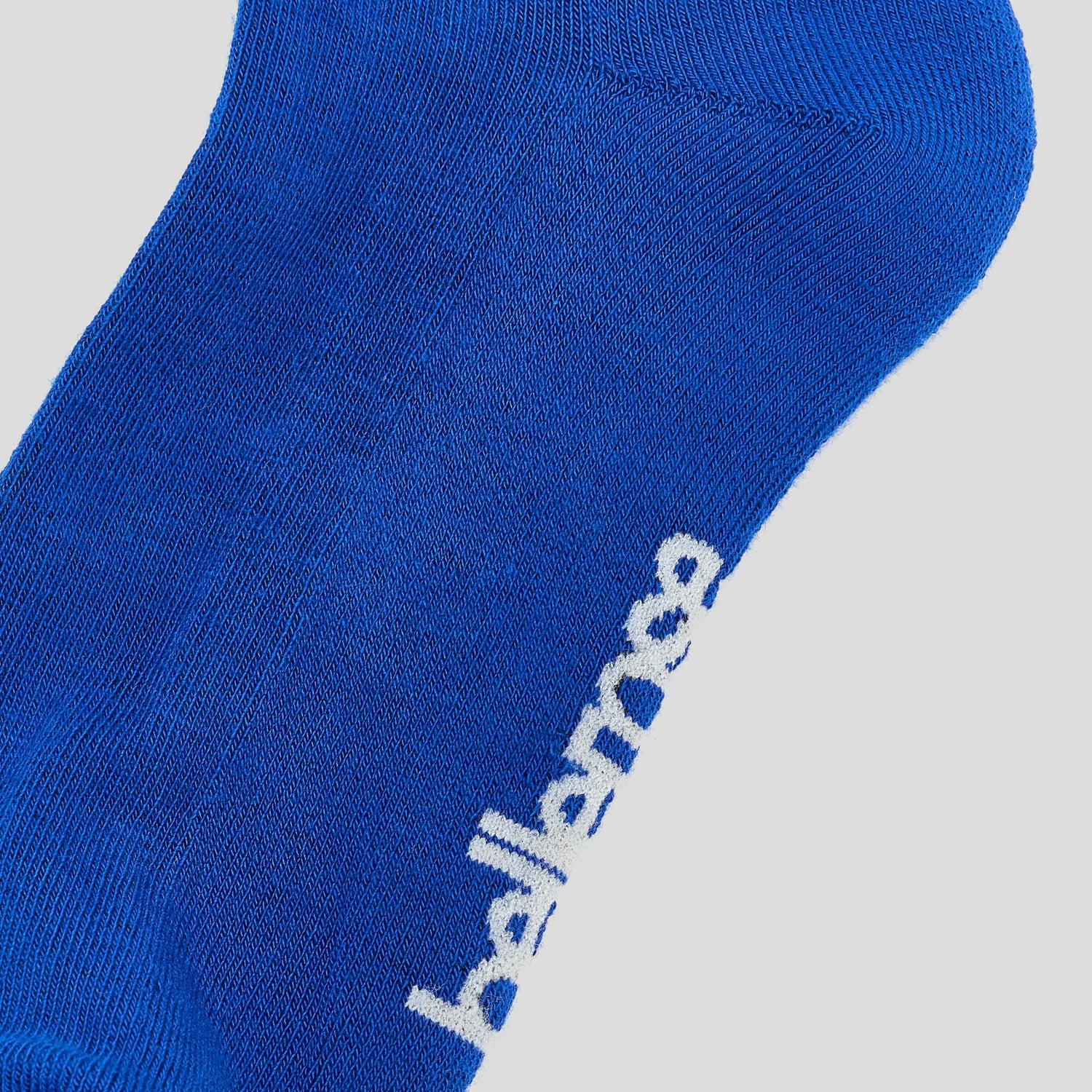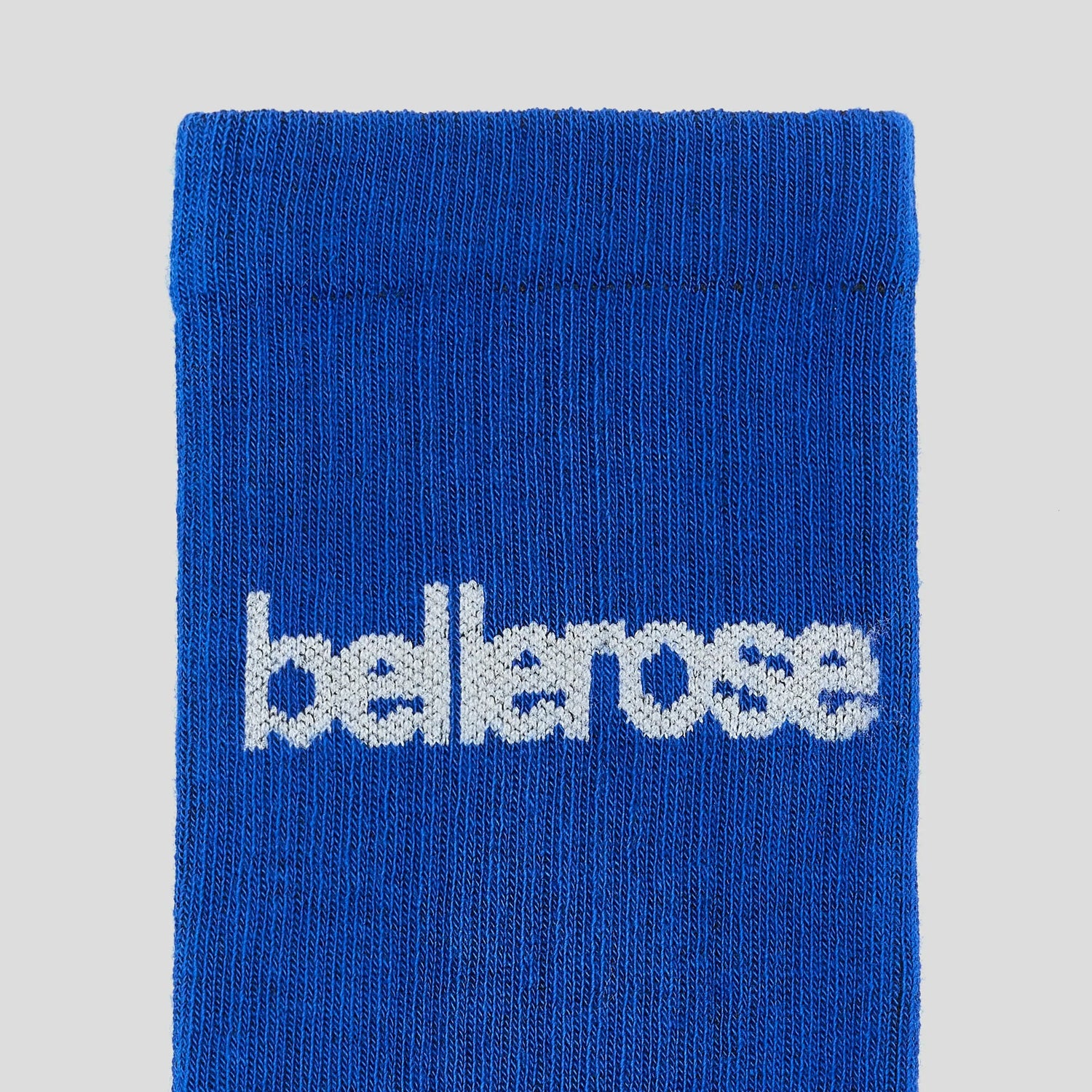 Ribbed crew socks in lazuli blue with a white bellerose logo on the ankle and sole, featuring reinforced toes and heels for extra comfort.