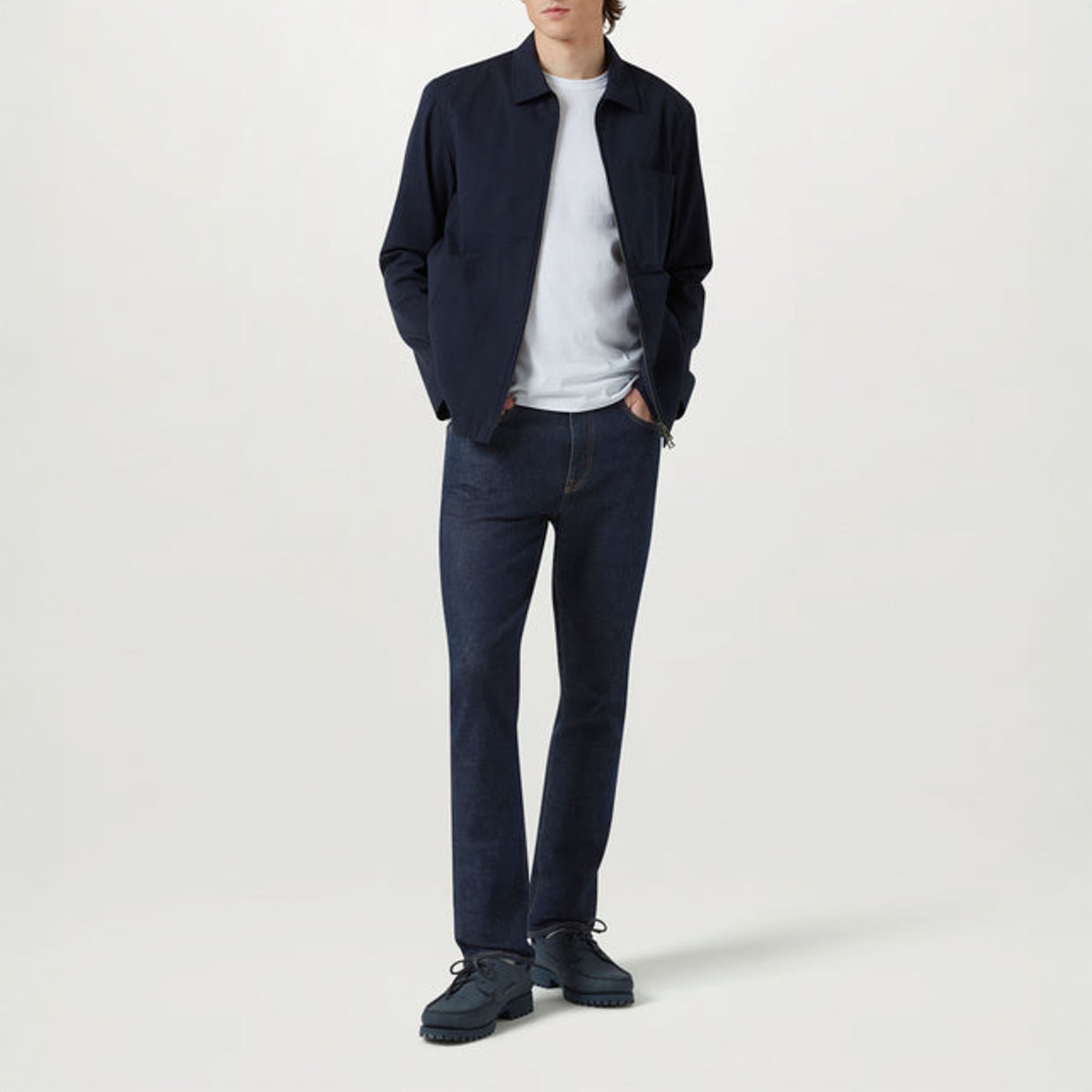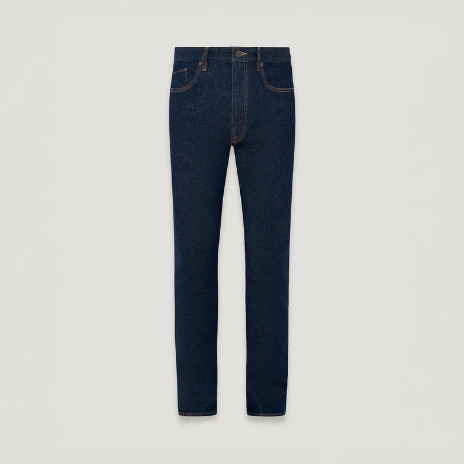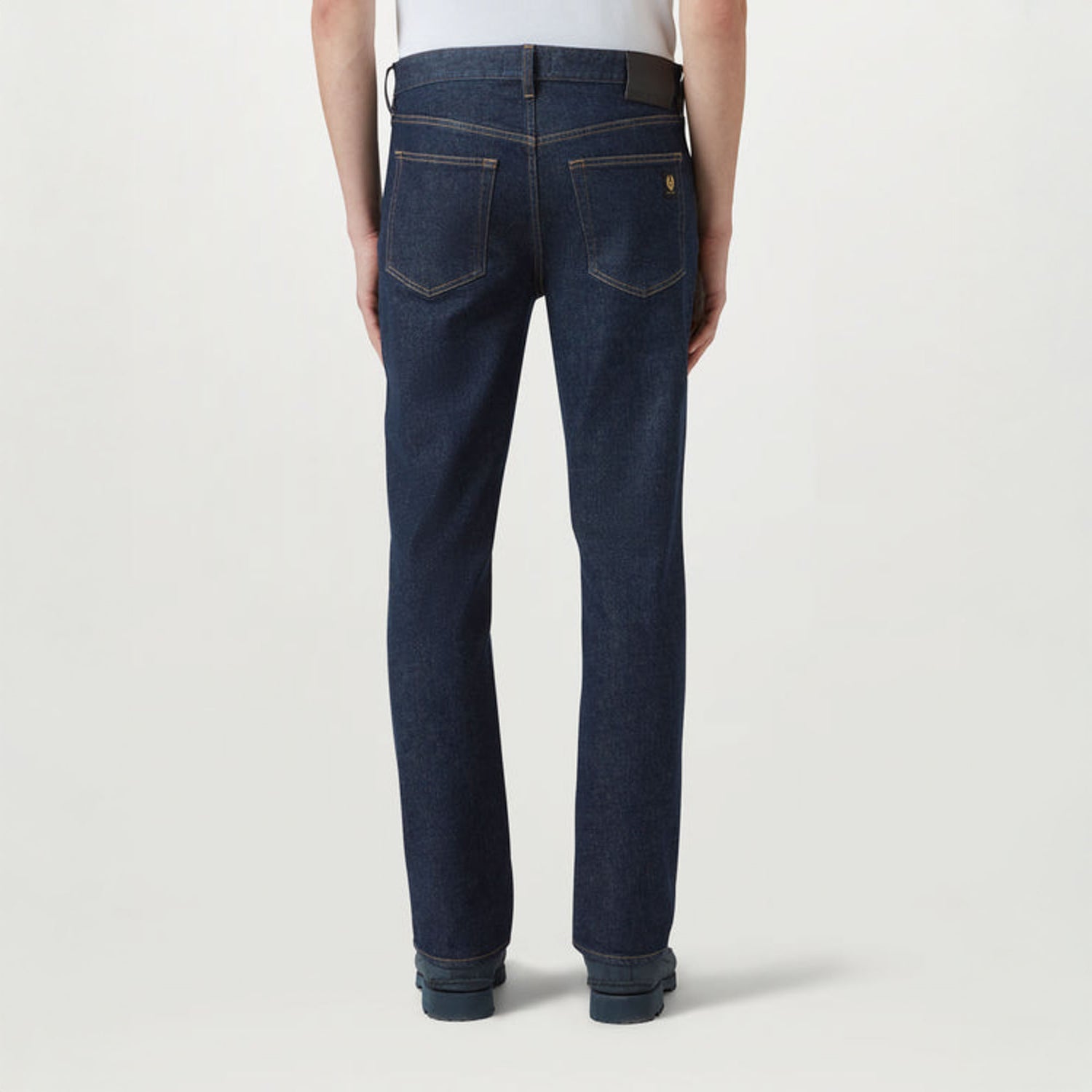 The Longton Regular Jeans in indigo rinsed denim return with a refined fit for Autumn/Winter. Featuring a true mid-rise, slimmer thigh, and a straighter leg, this updated style offers a modern silhouette. New shank buttons, rivets, and a black leather patch deliver bold detailing, while the iconic embroidered Phoenix logo on the back pocket adds a signature finish.