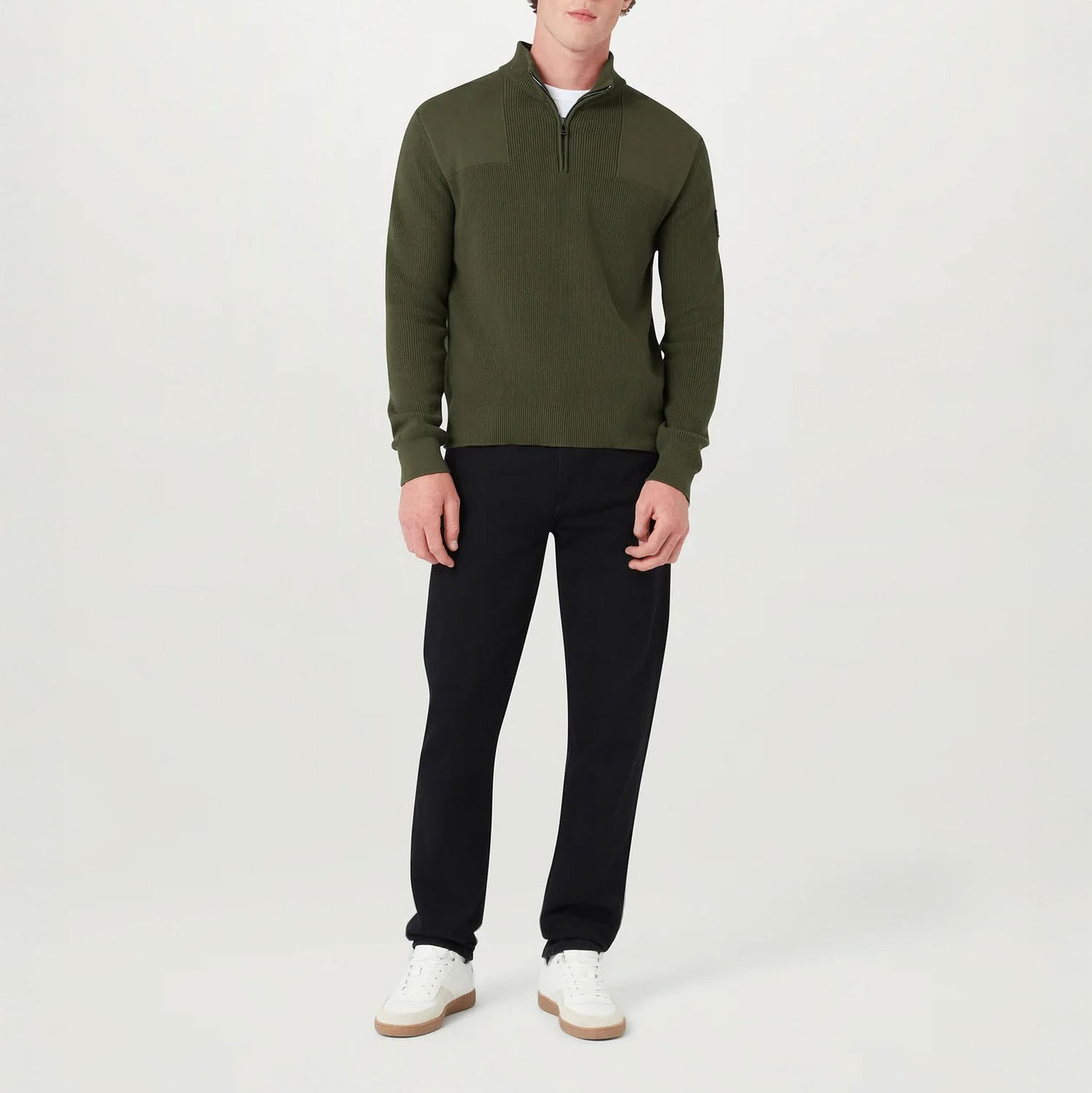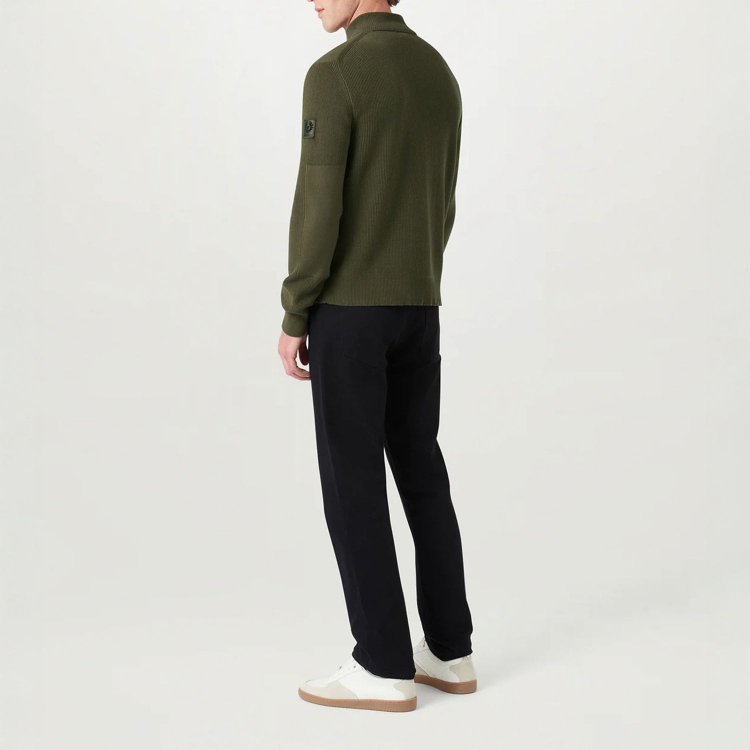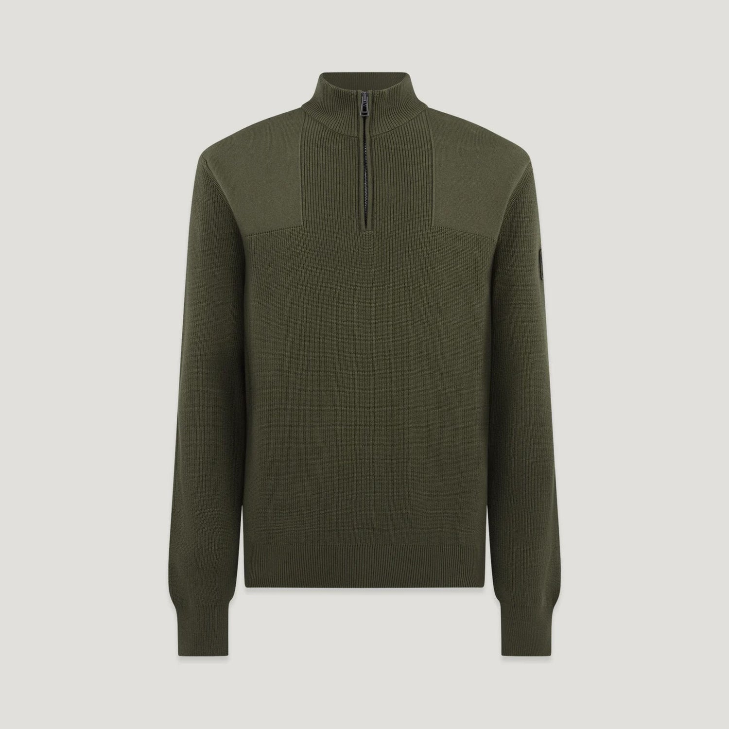 BELSTAFF Commander Quarter Zip Jumper in True Olive