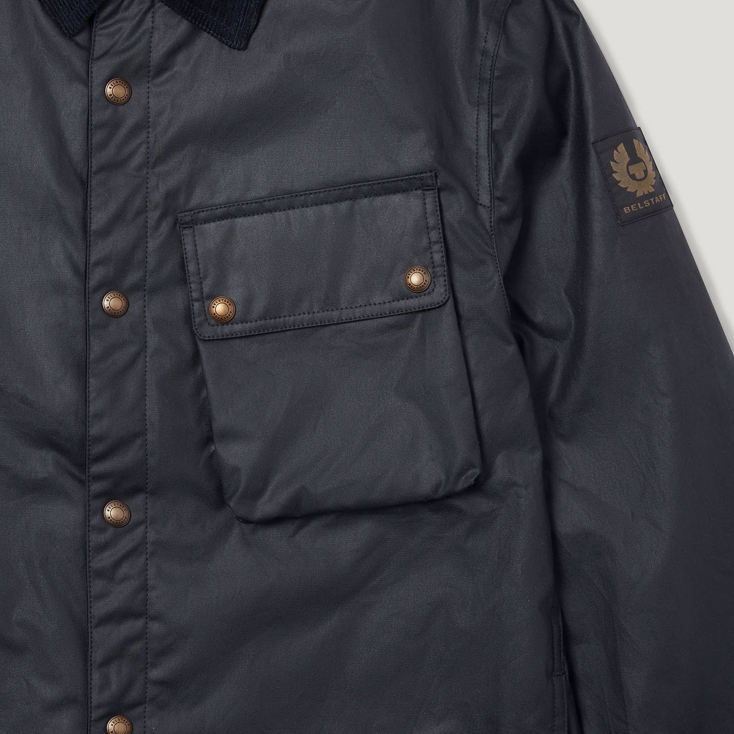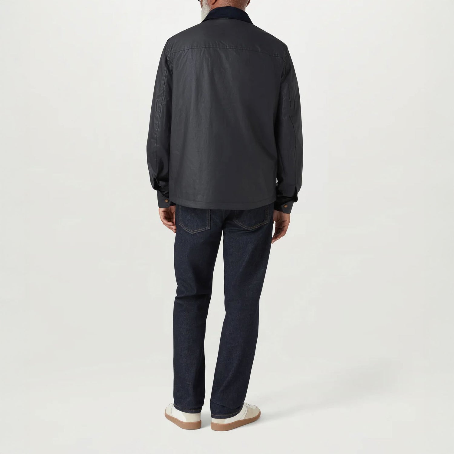 Meet the Ground jacket in dark navy with a stylish corduroy collar. It offers instant warmth and protection with 6oz. British Millerain waxed cotton, which is water and wind repellent.