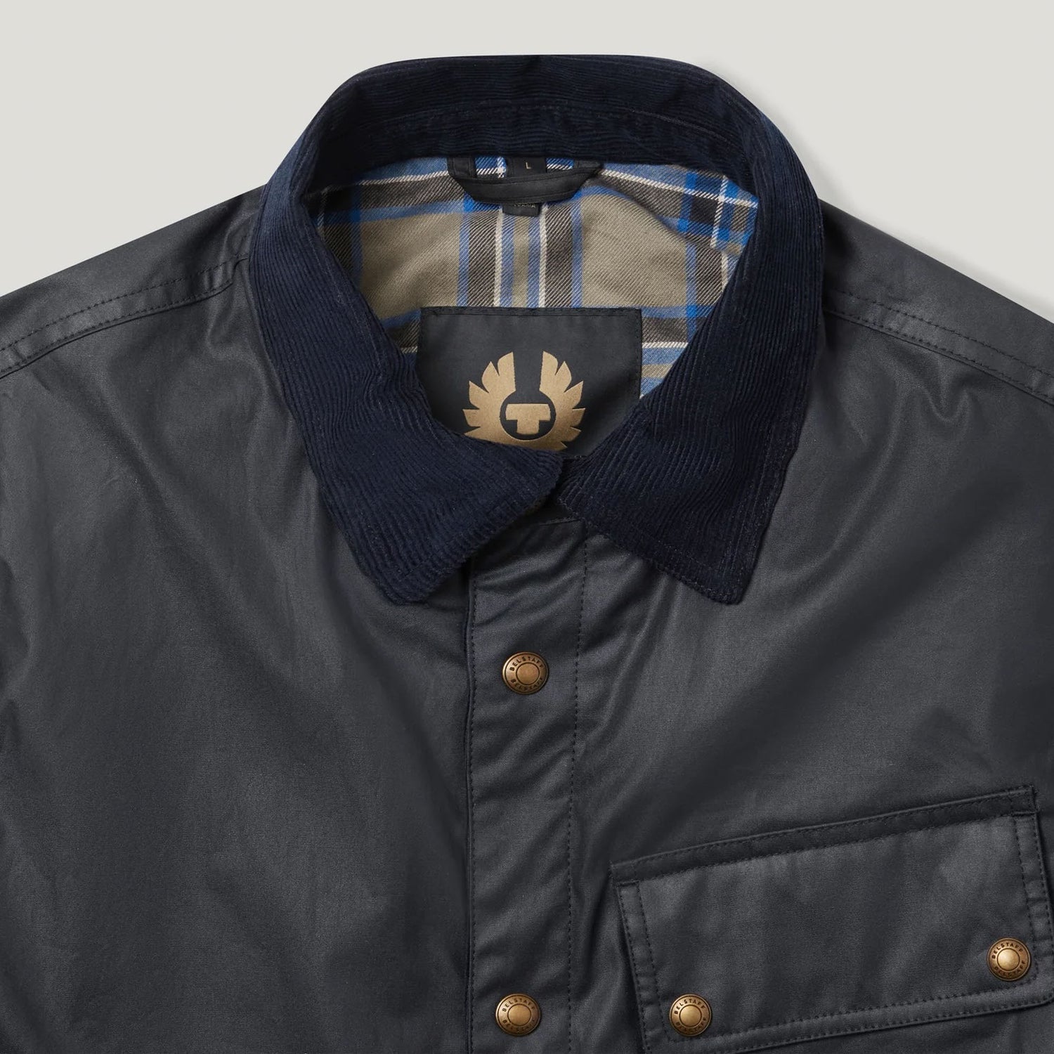 Inside features a cotton twill lining woven in the signature Belstaff checked pattern, the angled moto inspired chest pocket and snap adjustable cuffs with antique brass hardware. This men’s jacket is as at home on country walks as it is on the work commute over a suit.