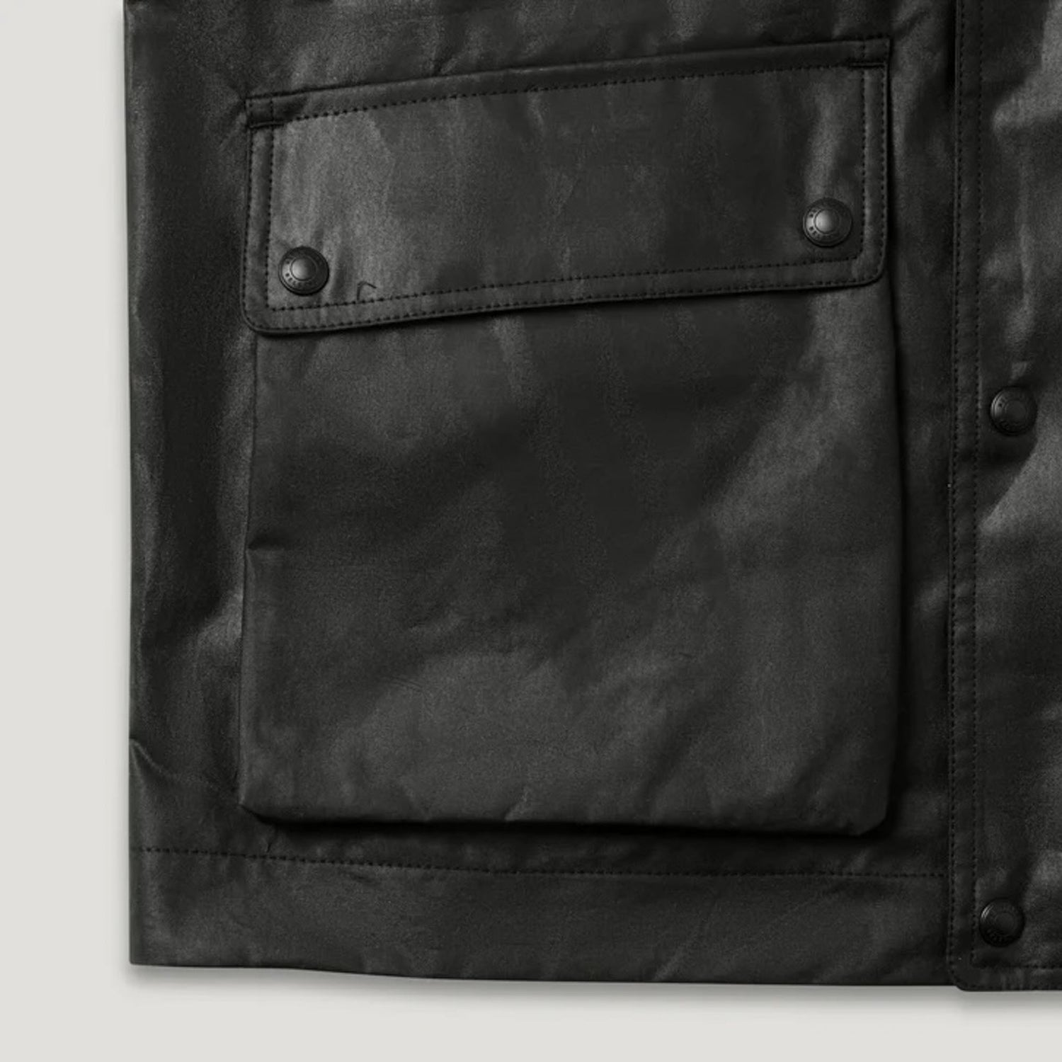 The Incline jacket in black is a new shape within our waxed collection. This men’s field design jacket is expertly crafted from 6oz. British Millerian waxed cotton, which is water and wind-repellent. Inside, it features a cotton twill lining woven in the signature Belstaff checked pattern.