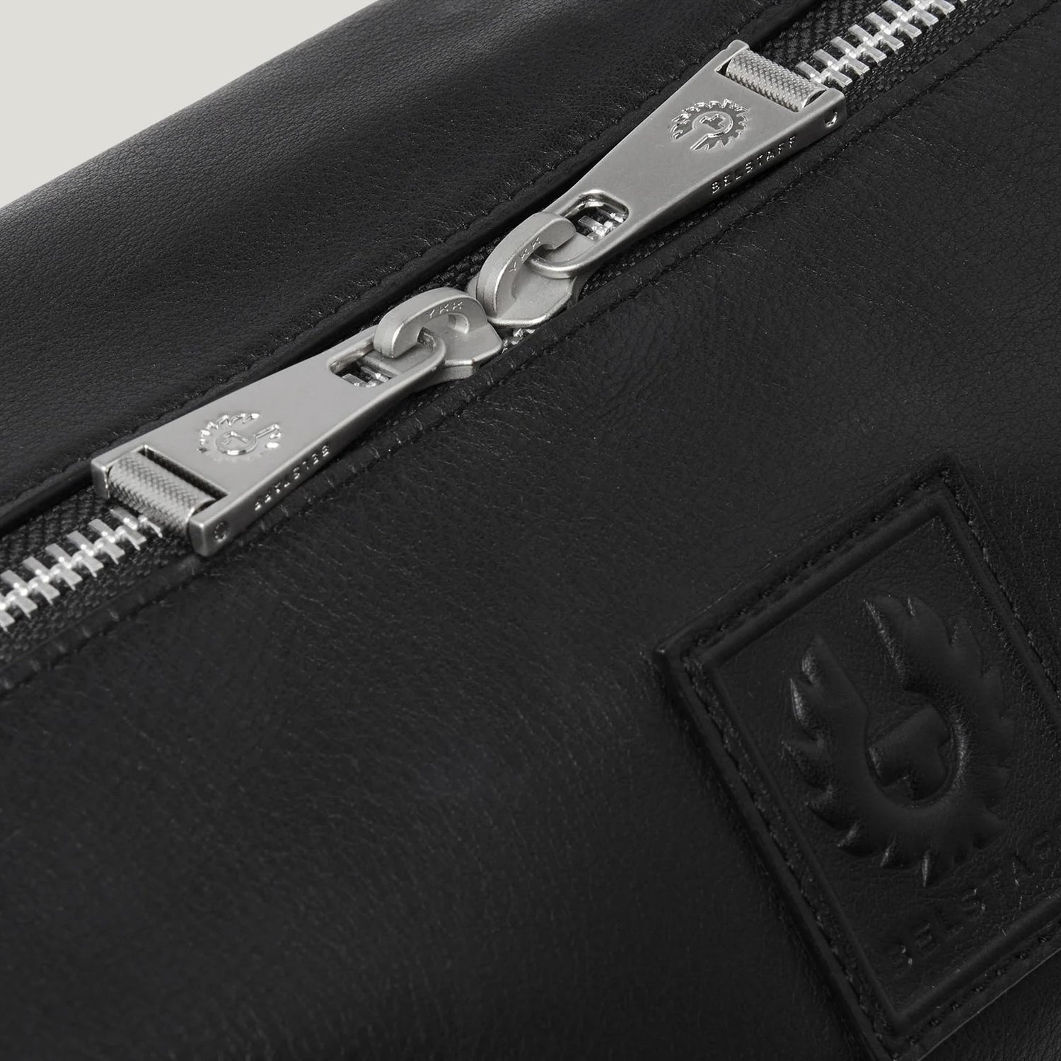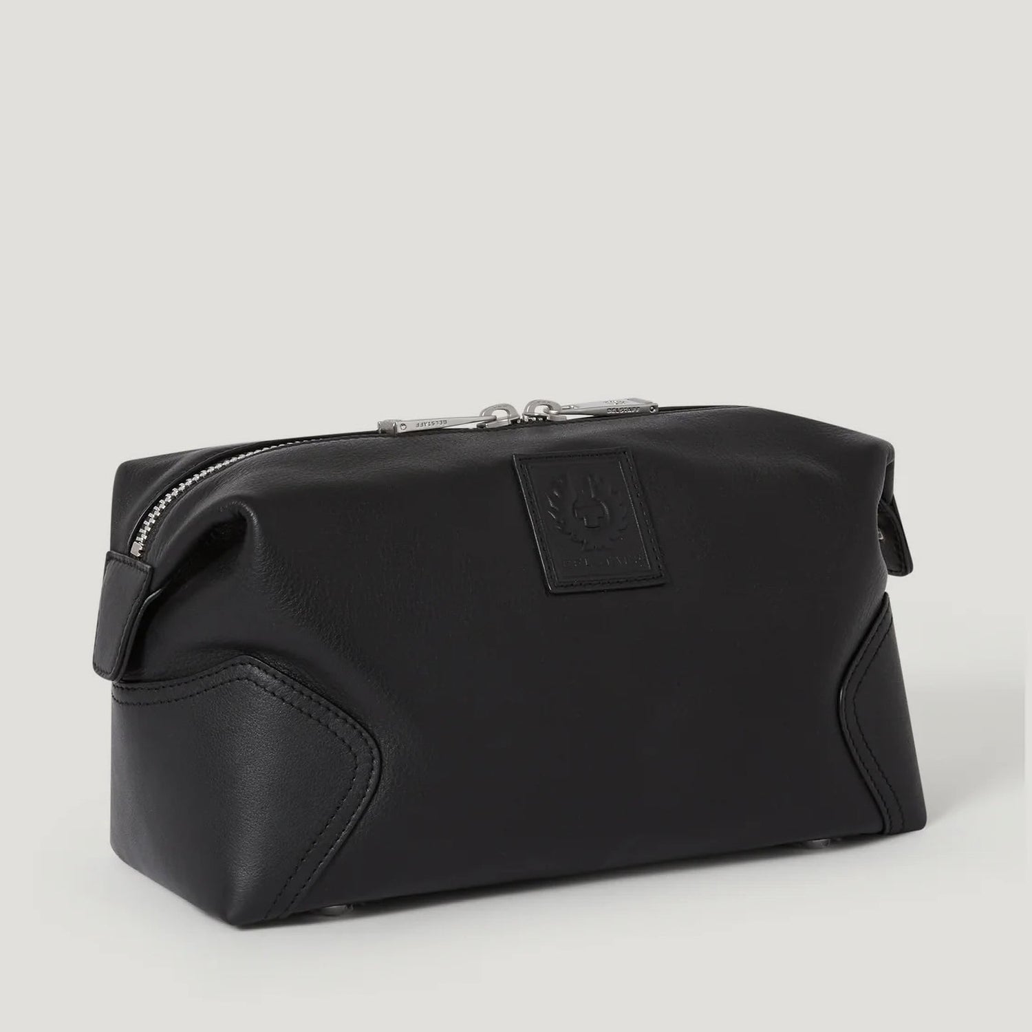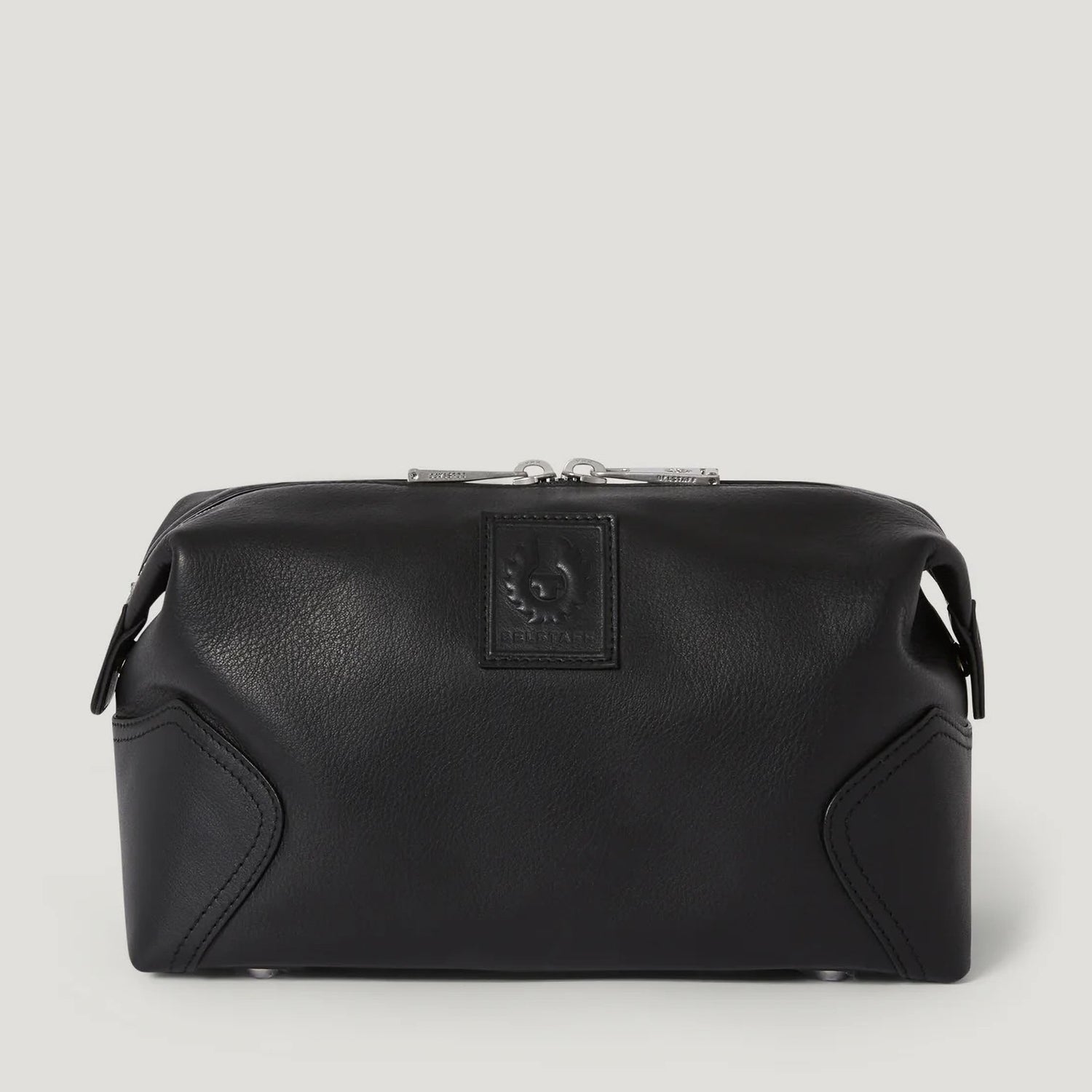 The Maclagan double zip wash bag is always ready for your weekend getaway. This compact and minimalistic style is made from high-density, water-repellent recycled black leather for durability against wear and tear. This handy piece keeps all your grooming necessities close at hand, whether at home or away.