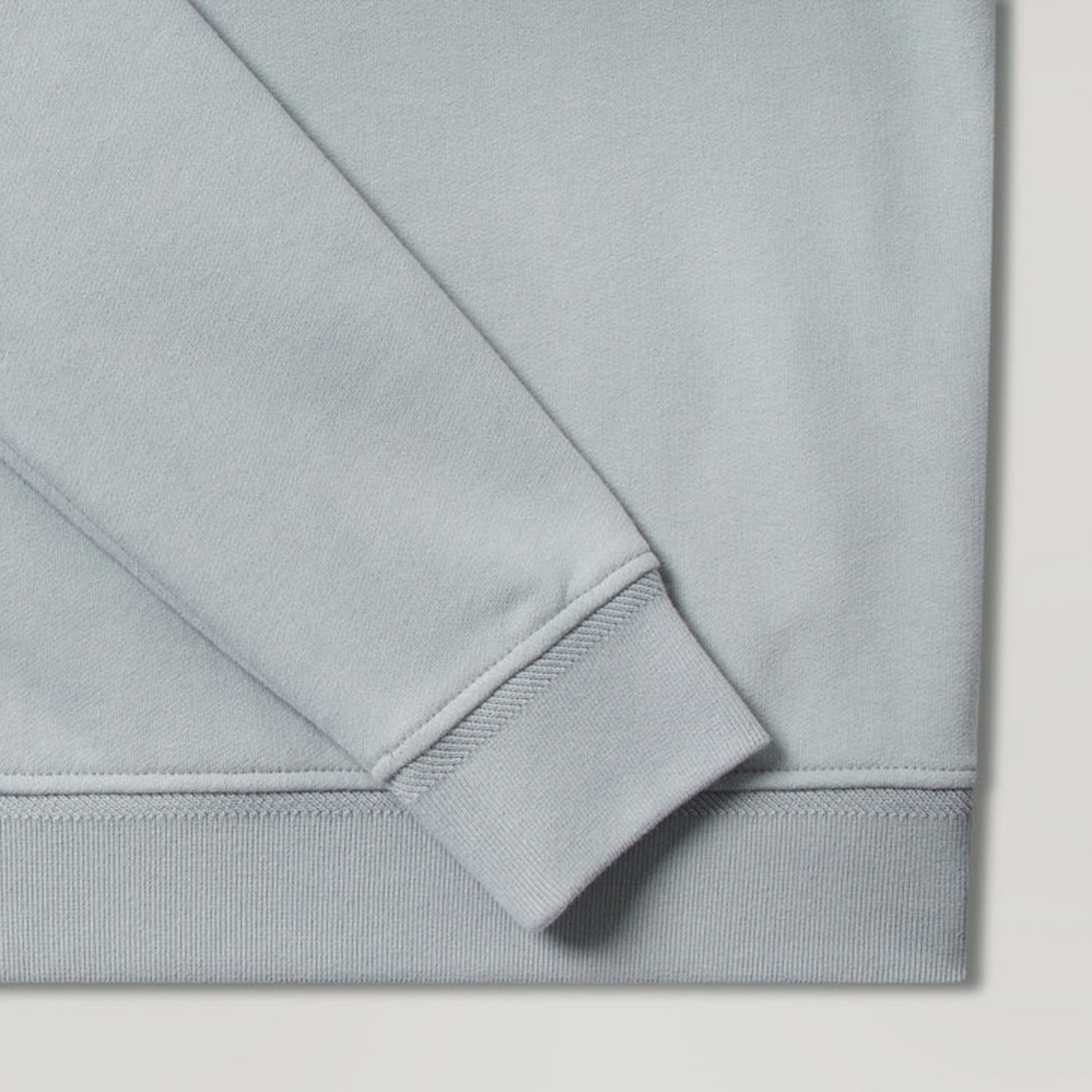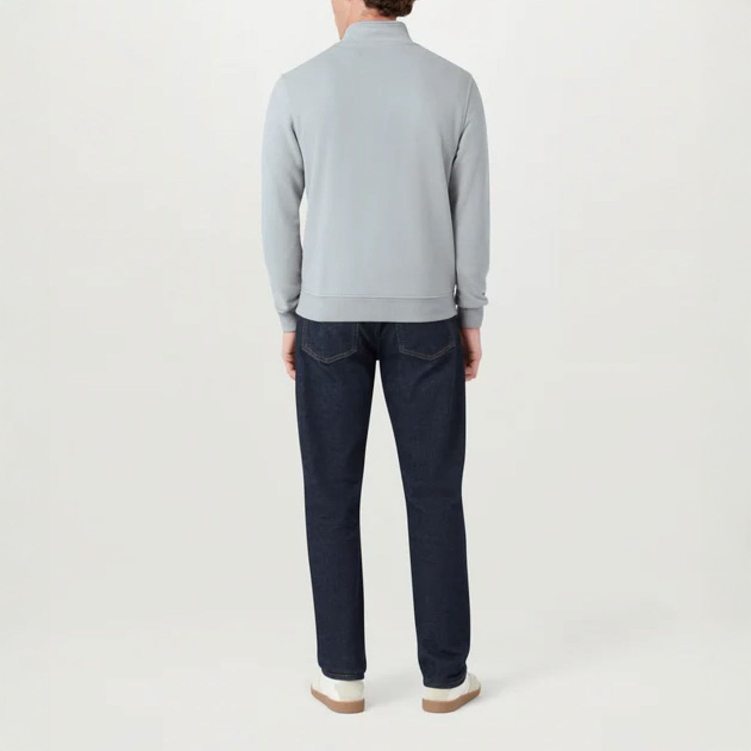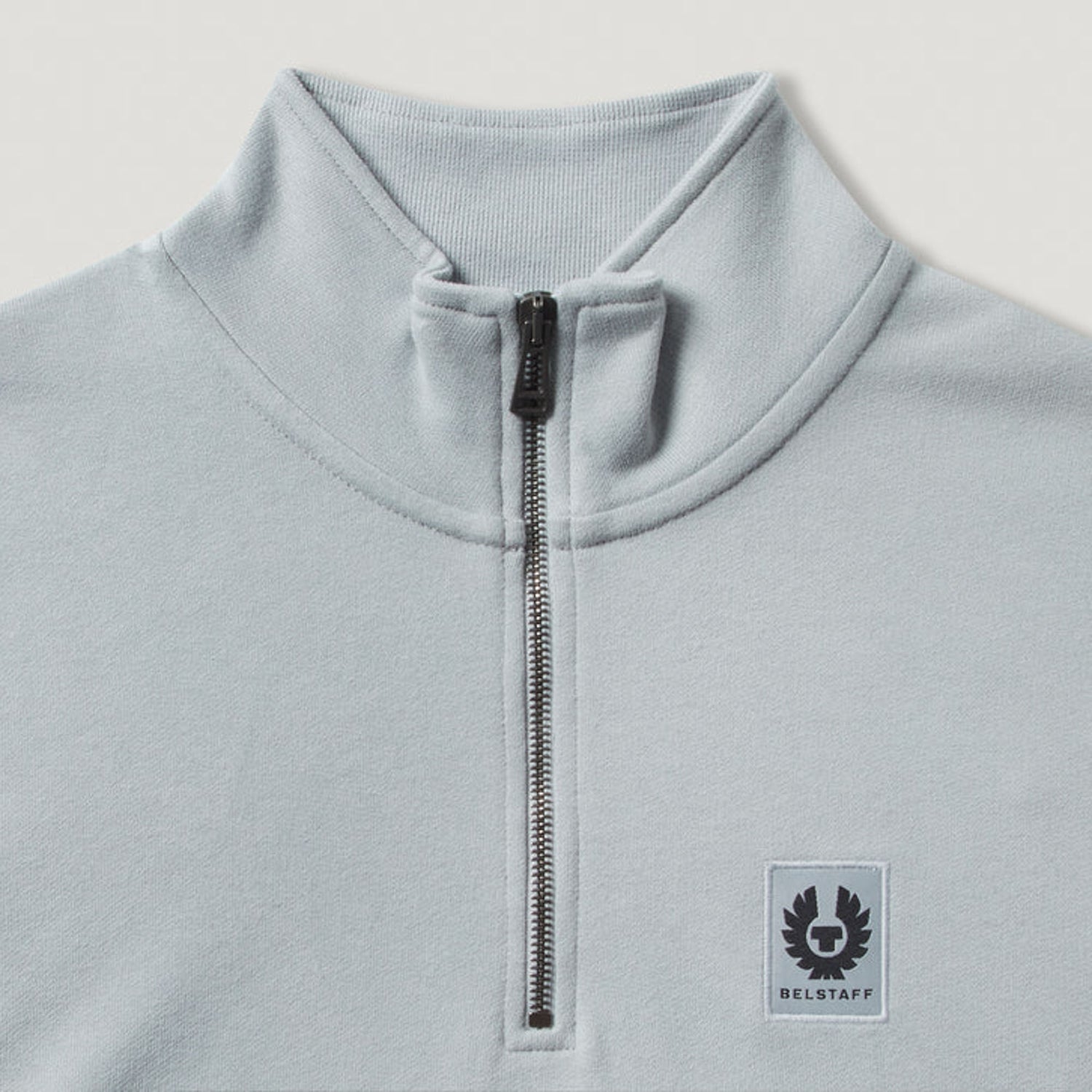 The Belstaff Quarter Zip in Quarry Blue. This simple sweatshirt is crafted from signature Belstaff fleece cotton and features a high zip collar and our badge of honour on the chest.