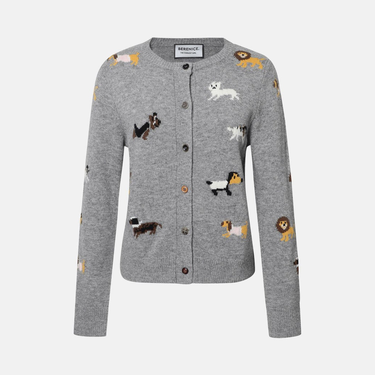 BERENICE MyAnimals Round-Neck Cardigan in Grey Melange