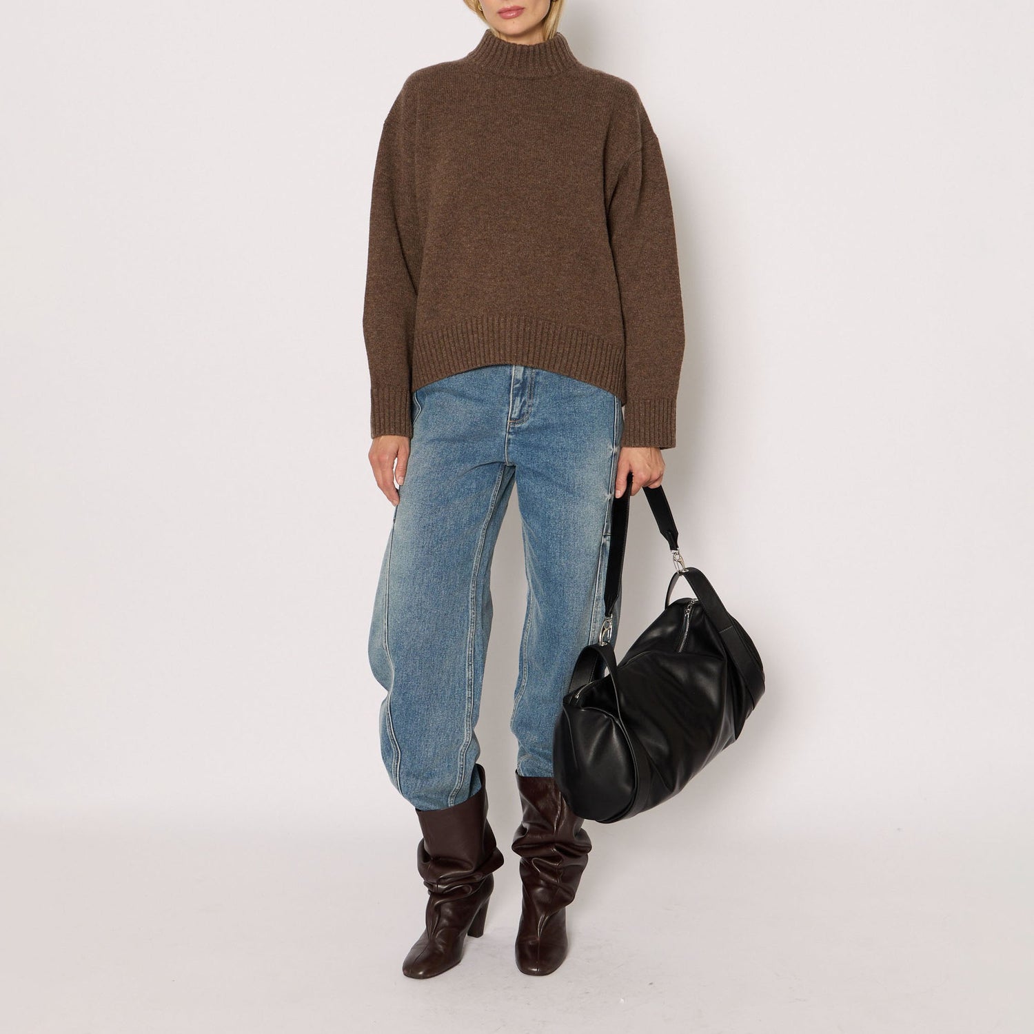 BERENICE Mimosa Loose Round-Neck Sweater in Mocha