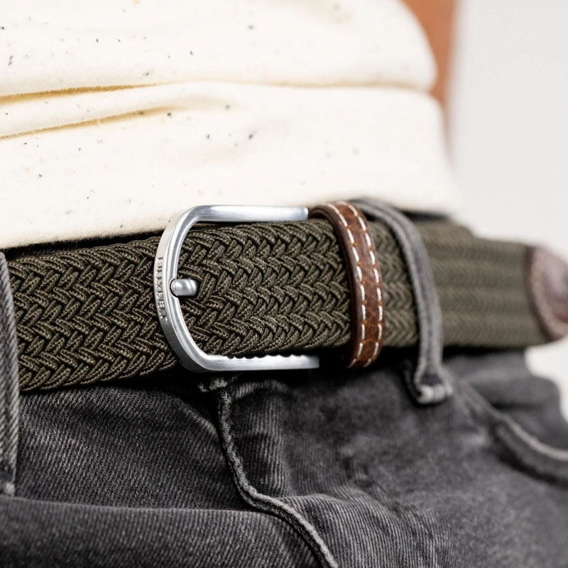 BILLYBELT Elastic Woven Belt in Vert/Kaki