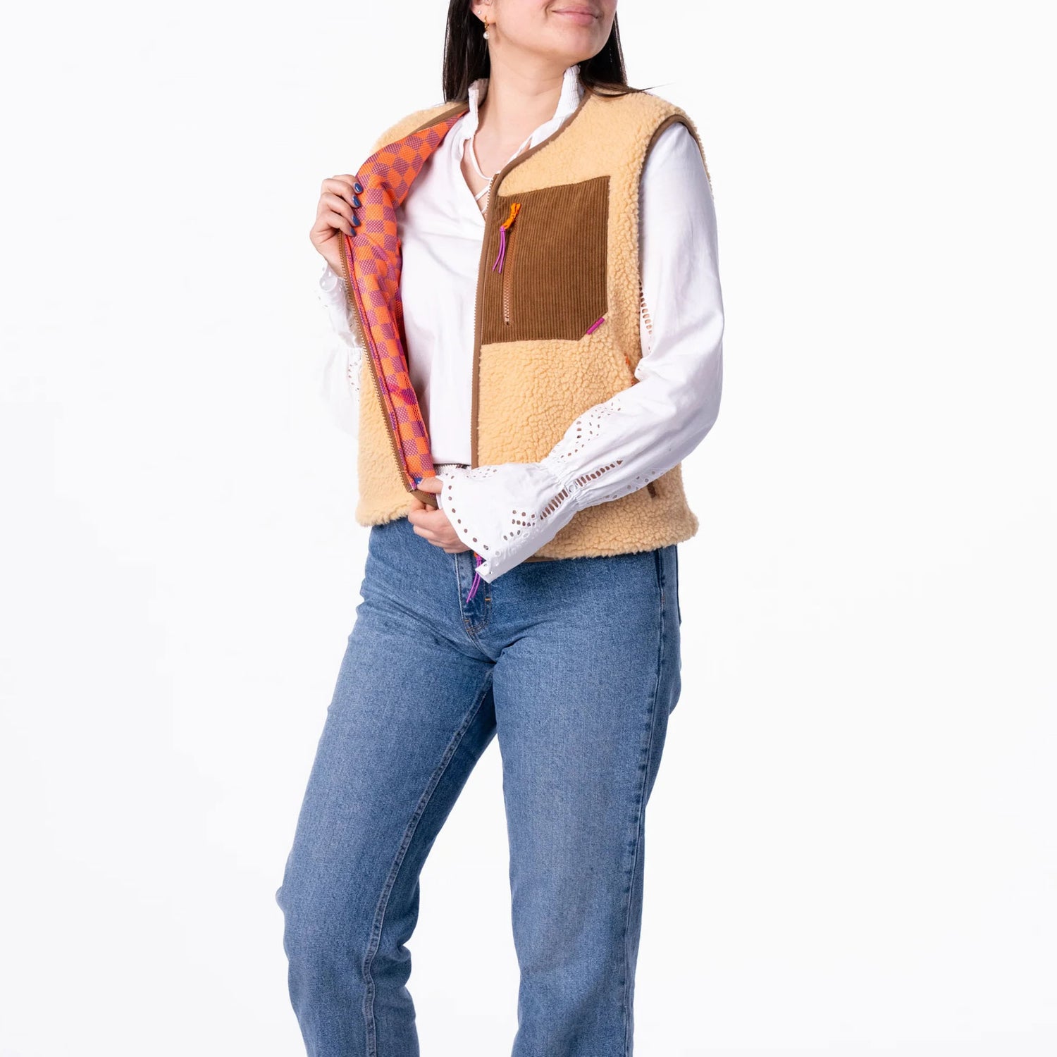 BILLYBELT Women’s Sleeveless Sherpa Zip Jacket in Beige