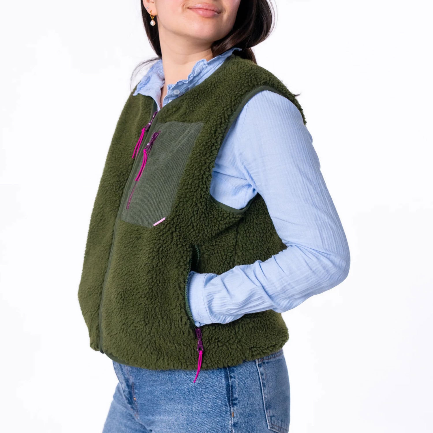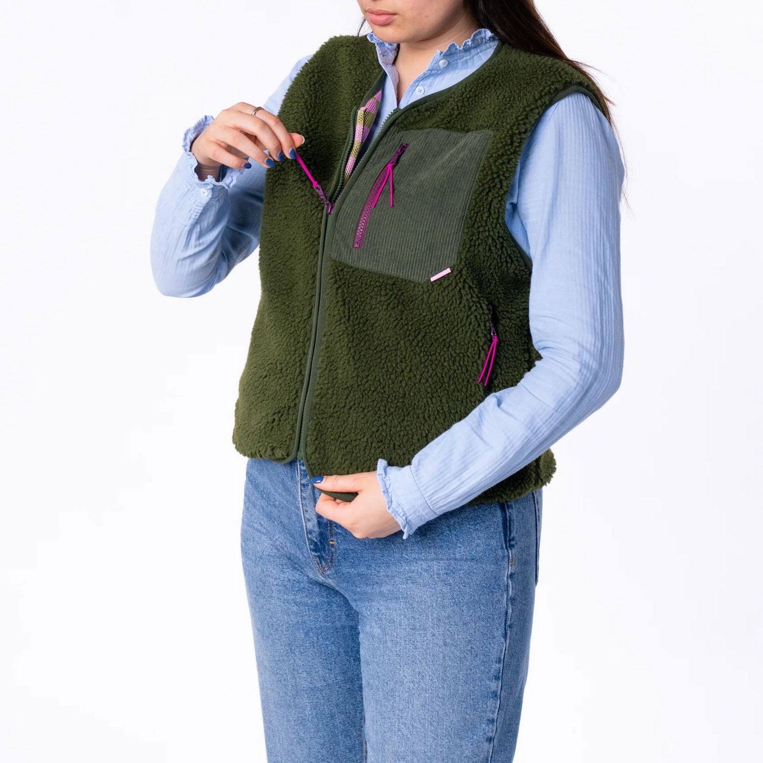 BILLYBELT Women’s Sleeveless Sherpa Zip Jacket in Khaki