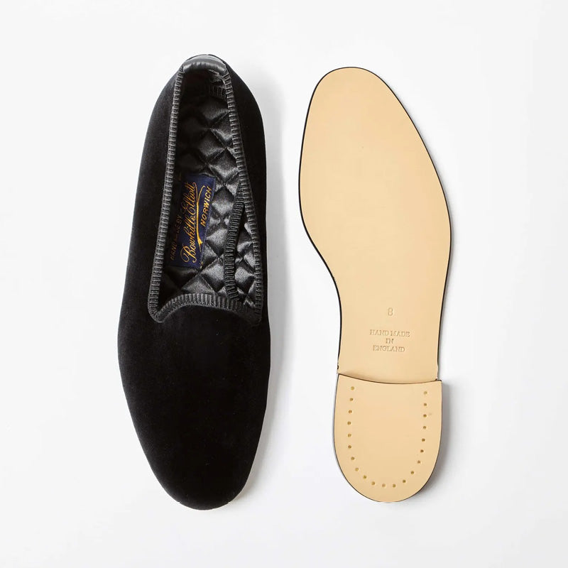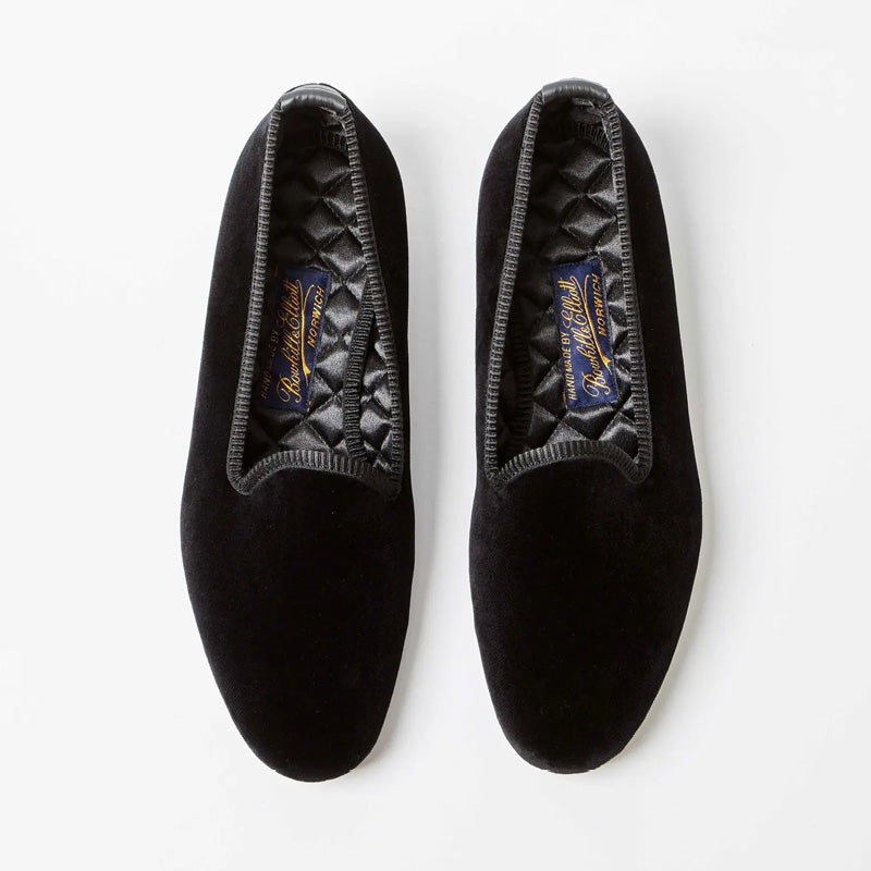 BOWHILL & ELLIOT Black Velvet Plain Venetian Pumps in Black Velvet