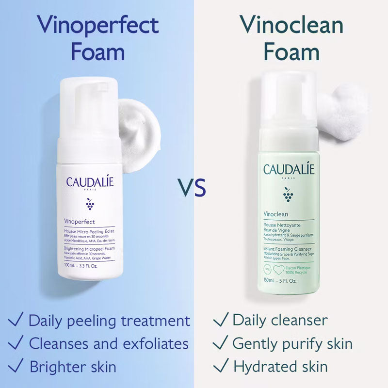 Apply the Vinoperfect Brightening Micropeel Foam to dry skin and massage over the face in circular movements.. Leave on for 30 seconds, then rinse thoroughly with water. Avoid the eye contour area. For the most sensitive skin, limit use to once or twice a week.