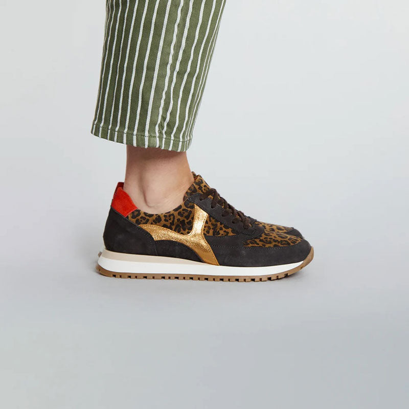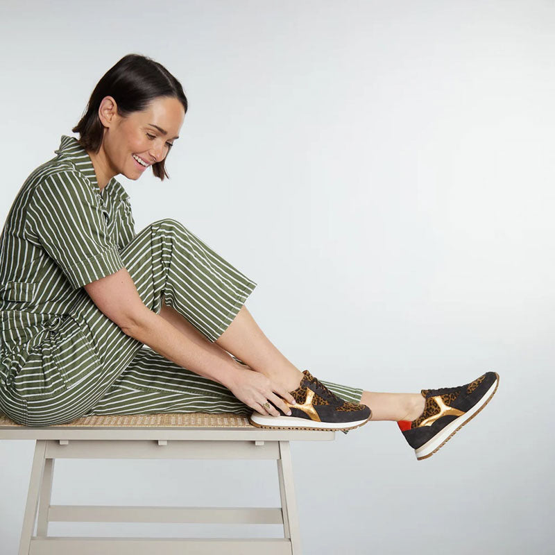 Finished with a luxe mix of leopard-print suede and metallic gold leather, they’re the ideal statement shoe to elevate any casual look