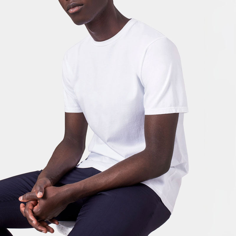 Made from 100% organic stetch cotton, this basic tee has a classic fit offering flexibility and casual style making it an ideal choice for any activity, whether you're running errands or lounging at home. Pair it with your favorite sweatpants for a laid-back look or dress it up with a tailored trouser for a sophisticated ensemble.