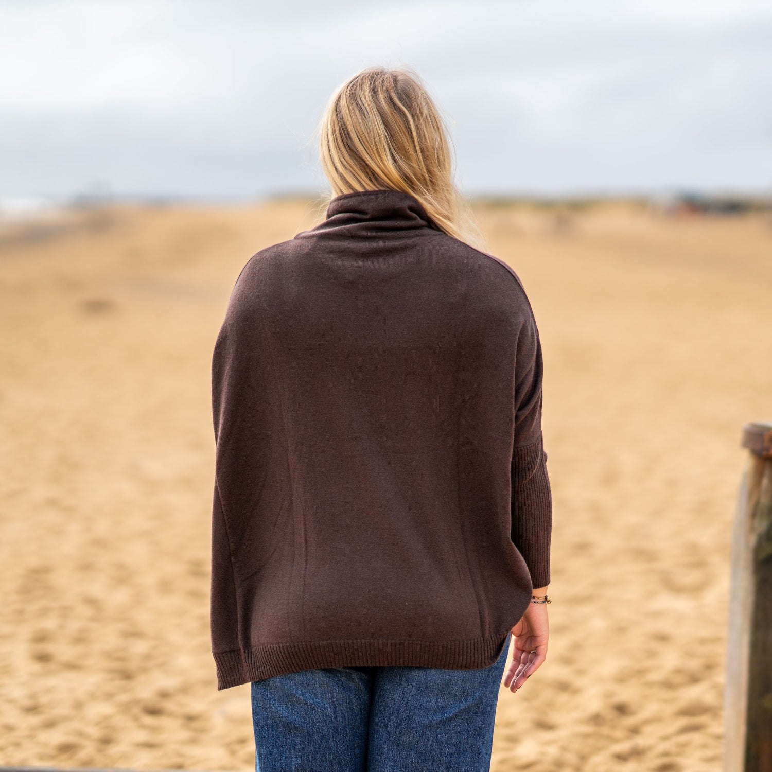Experience cosy elegance with the Funnel Neck jumper, crafted from a luxurious blend of cashmere and lambswool. Designed with an oversized fit for relaxed comfort, this jumper features a rich Bitter Chocolate hue that adds warmth and depth to your wardrobe.