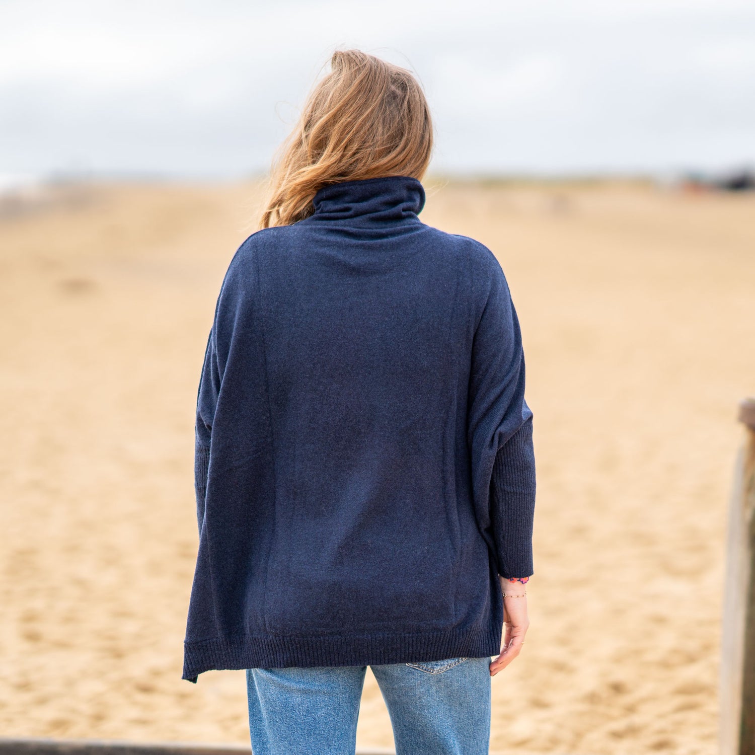 COLLEN & CLARE Cashmere and Lambswool Funnel Neck in Navy Marl