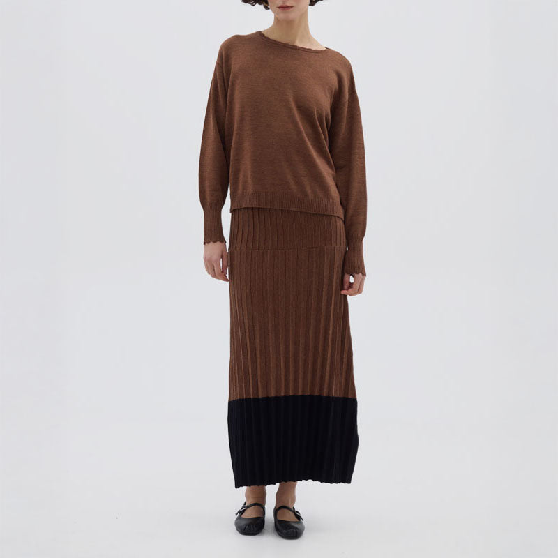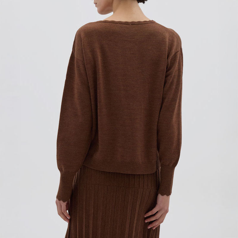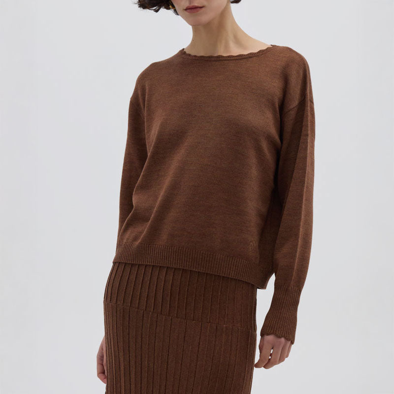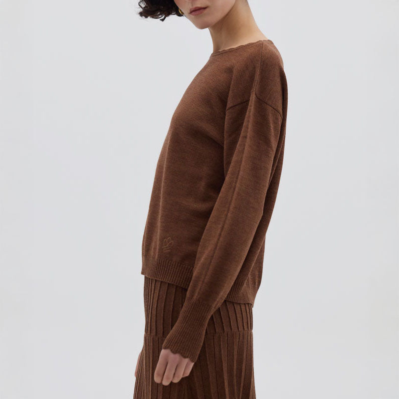 IRIS & WOOL Core Merino Logo Sweater in Walnut Melange