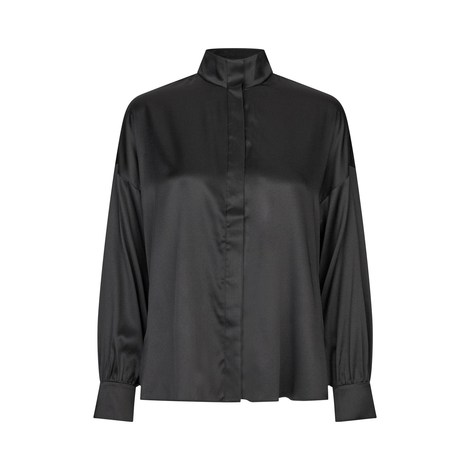 The Jet Black Silk Blouse from Dea Kudibal is a timelessly elegant and versatile addition to your wardrobe. Crafted from luxuriously soft silk, the fabric drapes beautifully and feels exquisite against the skin. A striking high stand collar and deep cross-over V-neckline lend this blouse a sophisticated edge, blending classic femininity with modern design.