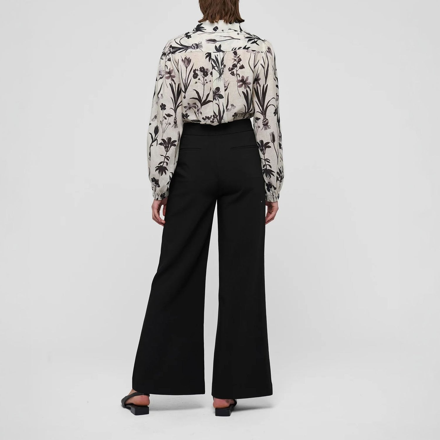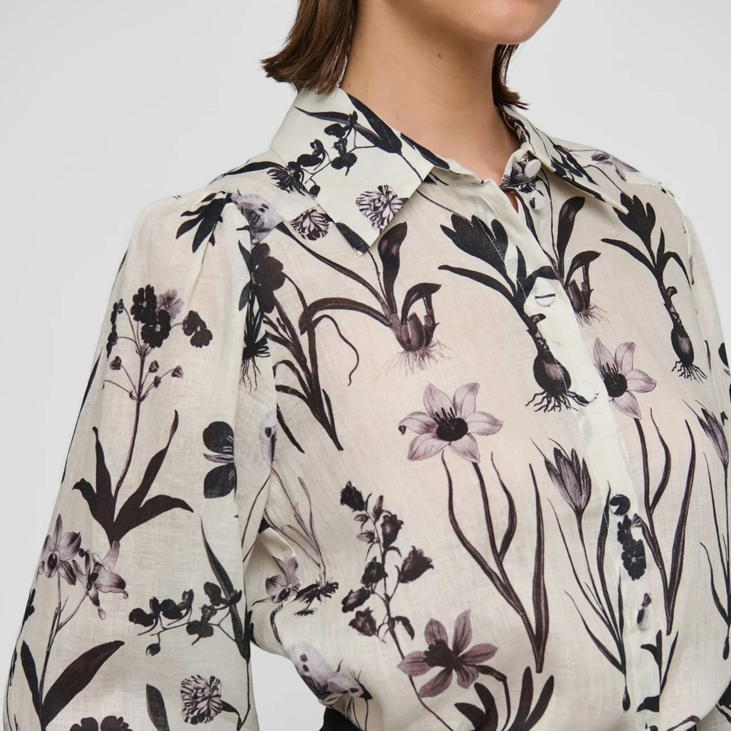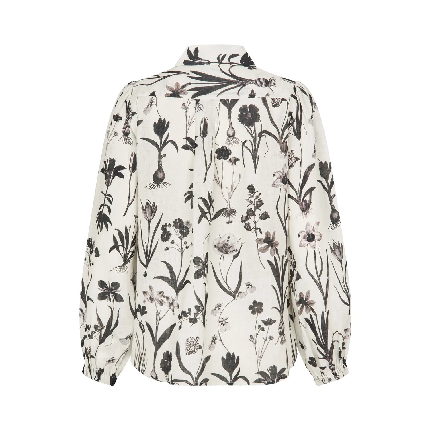 Is spring here? With its full voluminous sleeves give this beautiful, regular fit blouse a feminine and elegant air. The fine linen fabric has a beautiful handle and the botanical print in black is sophisticated. Elastic at the cuffs give a relaxed vibe.
