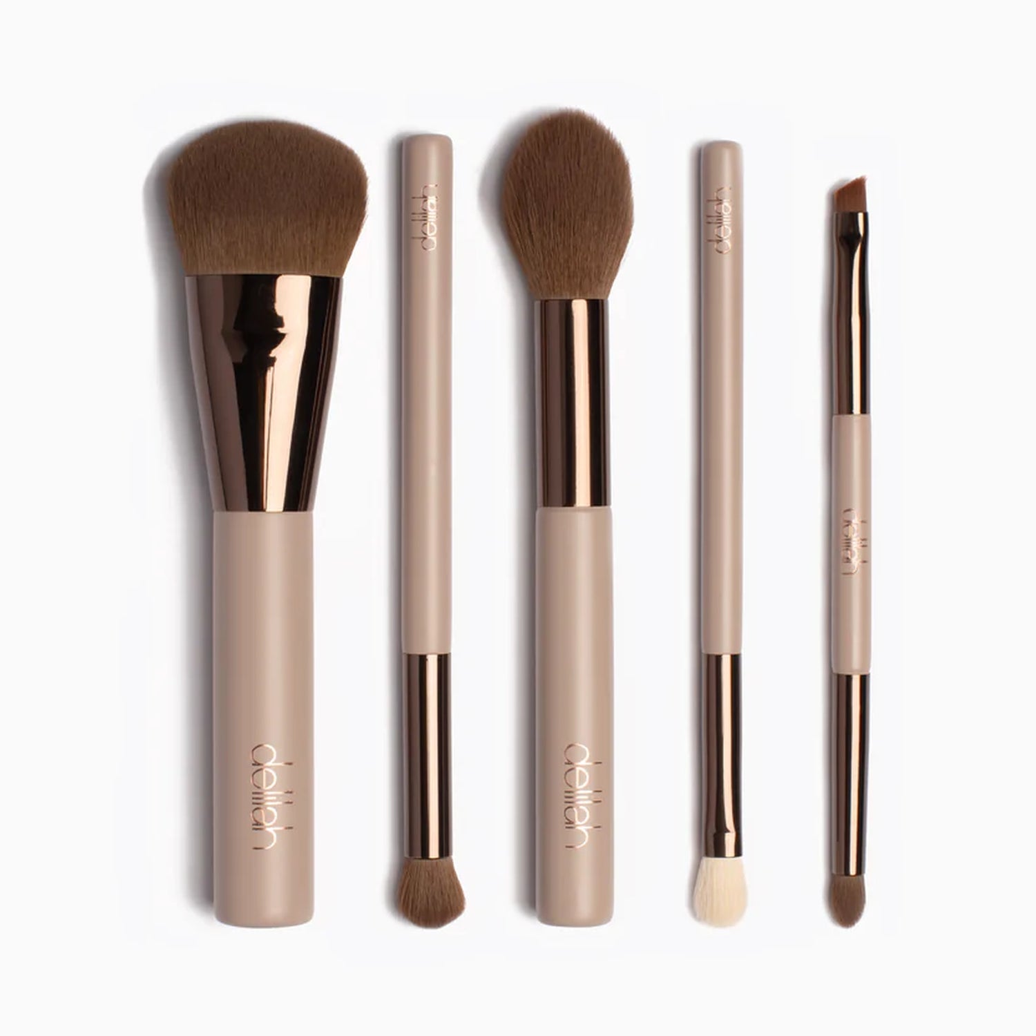 Elevate your beauty ritual with the award-winning 5-Piece Brush Collection – where ethical luxury meets professional performance. This thoughtfully curated set delivers the perfect balance of precision, versatility, and sustainability, empowering you to create flawless looks with confidence. Each brush is meticulously crafted to enhance the application of your favourite Delilah formulations, transforming your daily makeup routine into an indulgent experience