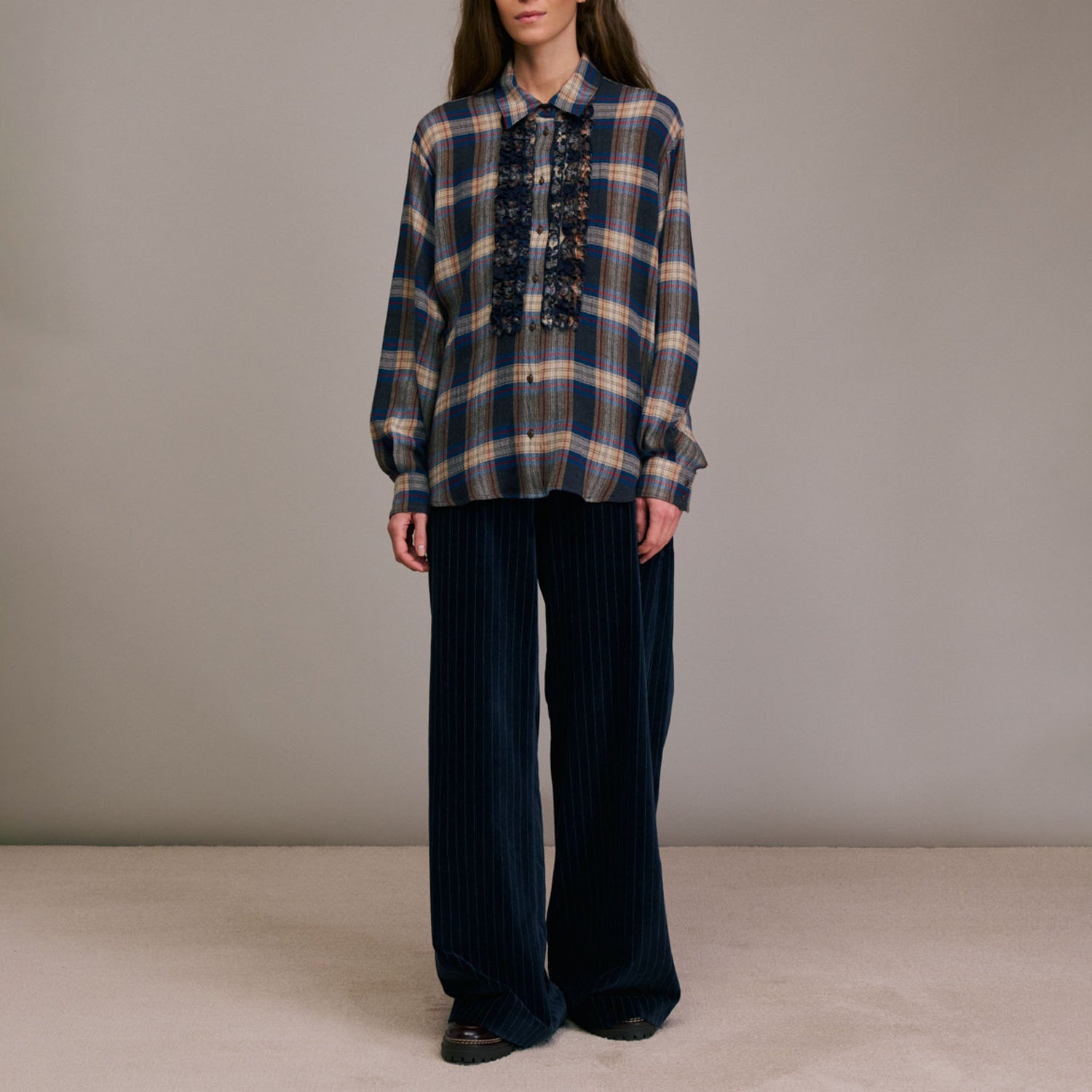 Romantic with a modern edge, the Castilina Shirt features soft ruffle detailing that adds a feminine touch to its classic silhouette. Crafted in a beautiful Blue/Grey tone, this long-sleeved shirt blends structure with softness — perfect for dressing up denim!
