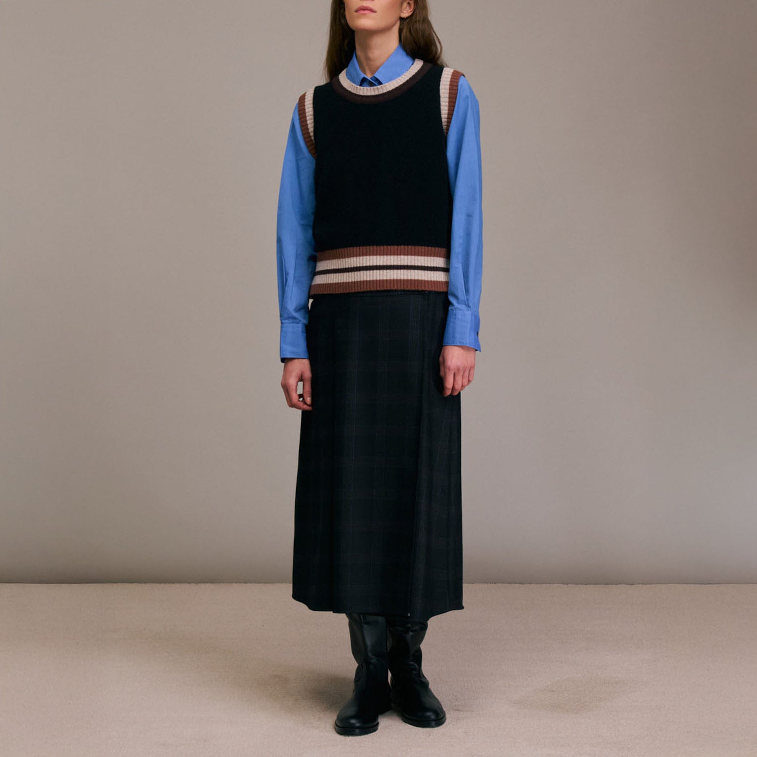 A vest-style piece crafted from extra fine merino wool. The Pumio Tank Top in deep navy is perfect layered over a shirt for a polished, modern look, breathable, and effortlessly stylish.